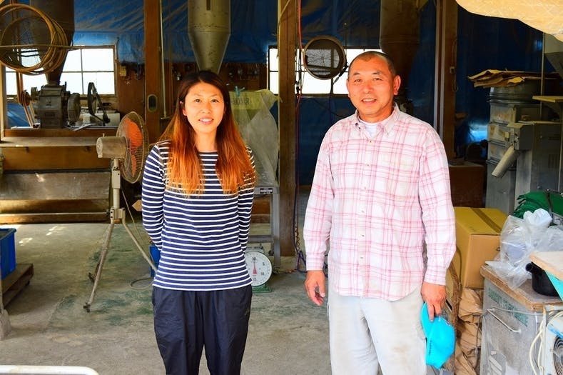 <お米農家さんの東さん(右)と娘の美里(左)さん。加工は主に美里さんのお仕事>