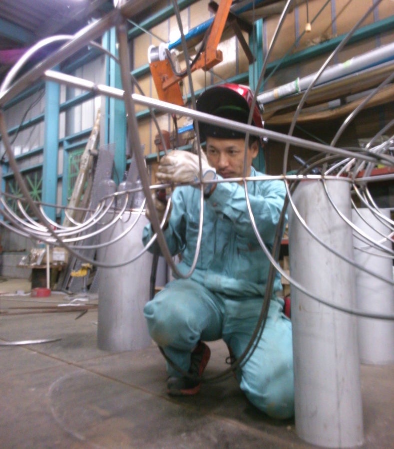 TOMOステンレスアート 芝田知明さんの作製風景