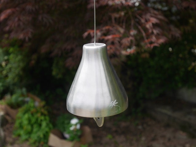 今回の山崩れで被災に遭われた方々や被災地域の方々に、地元の風を感じ風鈴の音色で癒されて頂きたいという想いで作らせて頂きました。又、自分自身、風鈴づくりは初めての試みで、得意なステンレスの素材を使い何度も試作を繰り返しながらオリジナルの風鈴づくりにチャレンジしました。