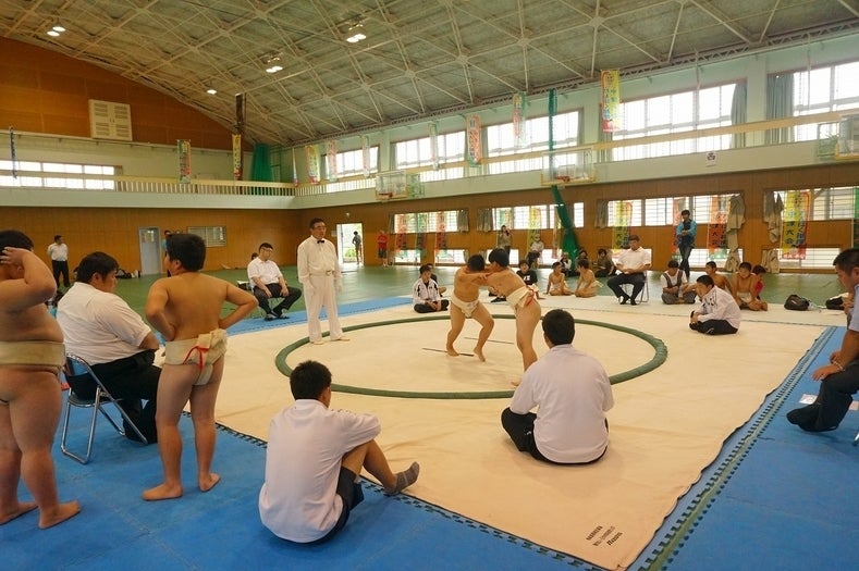 ↑ 小学生の子供たちが、両国国技館で開催される全国大会を目指す「わんぱく相撲中津大会」の様子。中津市の子供達熱い試合が繰り広げられ、ご両親や地域の大人の方々の歓声で大いに盛り上がりました。