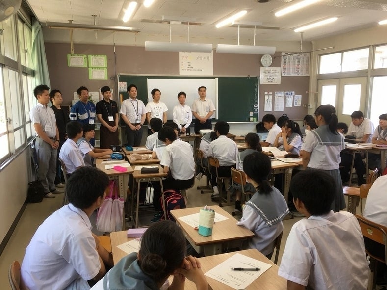 ↑中津市内の各中学校にて「出張!未来育成塾」を開催した様子。