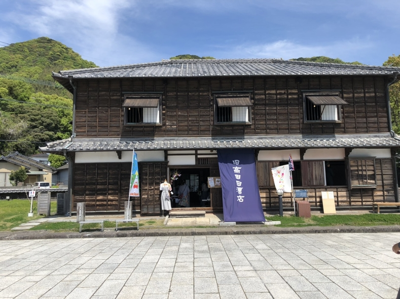 「高田回漕店」 1902(明治35)年以前に建てられ当時の面影を色濃く残している建物です。回漕店とは船や荷馬車を持ち、内外の貨物などを扱う運送会社または商店のことであり、高田回漕店は熊本市に本店を持ち4隻の汽船を所有していました。1997(平成9)年に三角町文化財に指定され、宇城市文化財へ引き継がれています。
