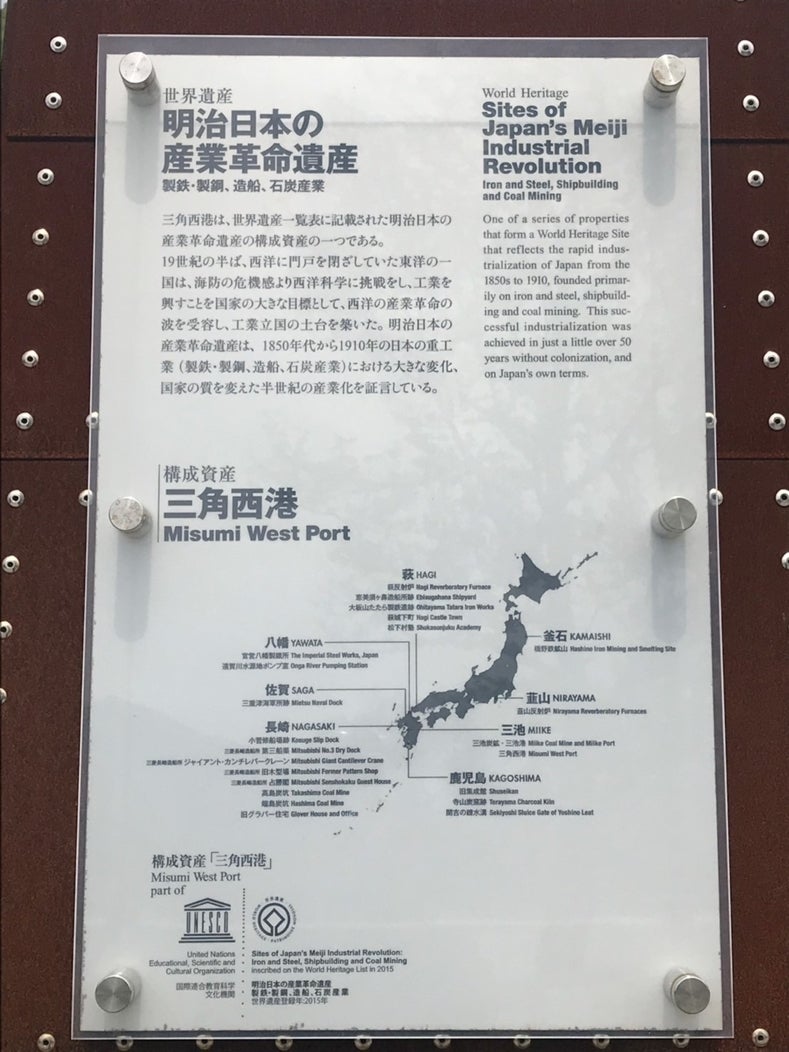 明治20年に開港し、当時の姿がそのまま残る石積み埠頭など、レトロ感あふれる三角西港が平成27年(2015)に「明治日本の産業革命遺産」の一つとして、世界文化遺産に登録されました。