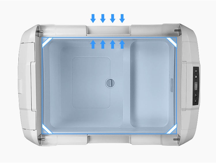冷却能力の低いペルチェ式と異なり、本製品は家庭用冷蔵庫と同じ強力なパワーを生む高性能コンプレッサー式を採用。冷却ガスを圧縮して循環させることにより、最低-26℃までも急速冷凍を実現できます。冷やす時間も短くて済むので省エネ。