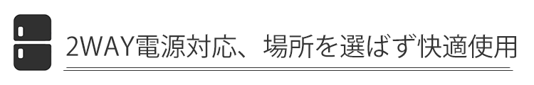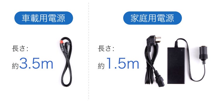 車載用DC電源と家庭用AC電源の2WAY電源を付属。