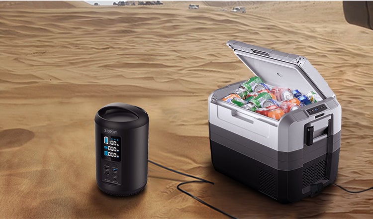 AC出力/シガーソケット対応のポータブル電源と併用すると、運動会、非常時などアウトドアの場合でも気持ちいいドリンクを楽しめます。