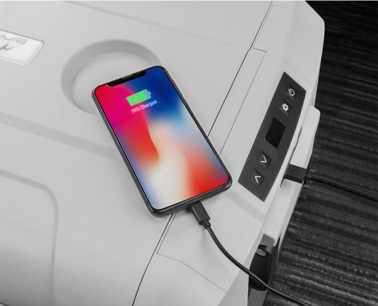 冷蔵庫に備え付けのUSBポートでいつでもスマホやタブレットなどUSB対応製品に充電可能です。