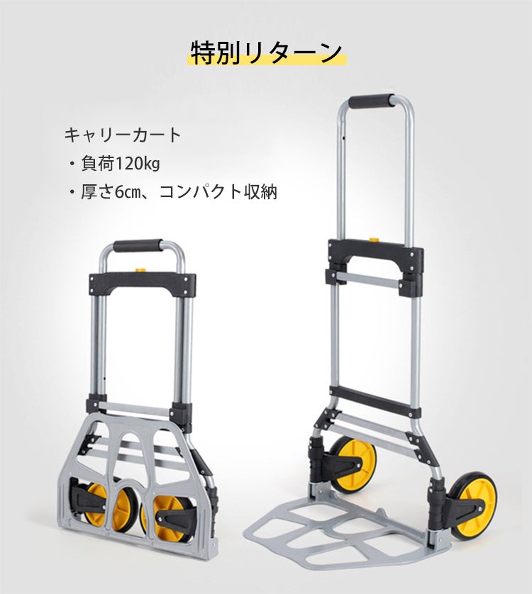 冷蔵庫の持ち運びやすさを考慮し、特別リターンにキャリーカートをご用意!