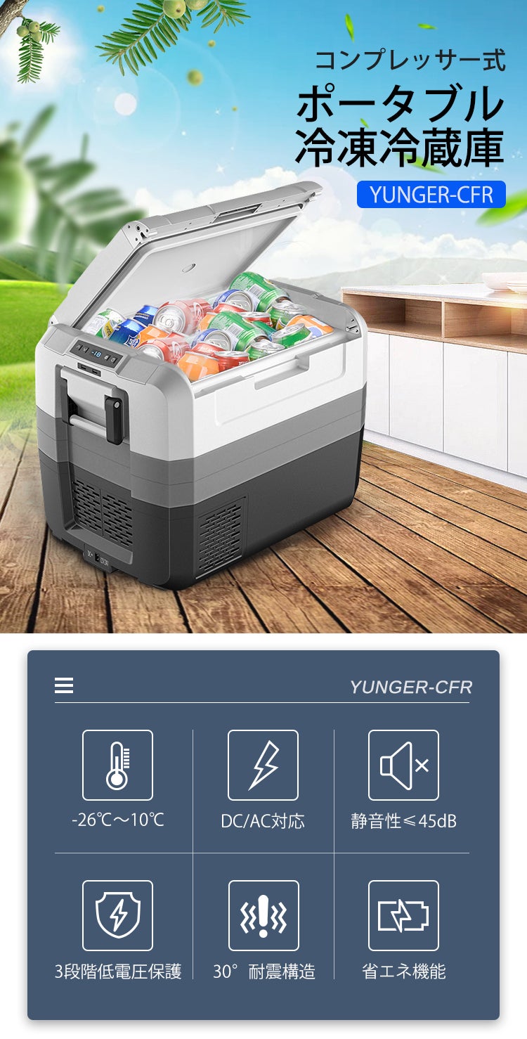 大容量ポータブル冷蔵庫「YUNGER-CFR」です。