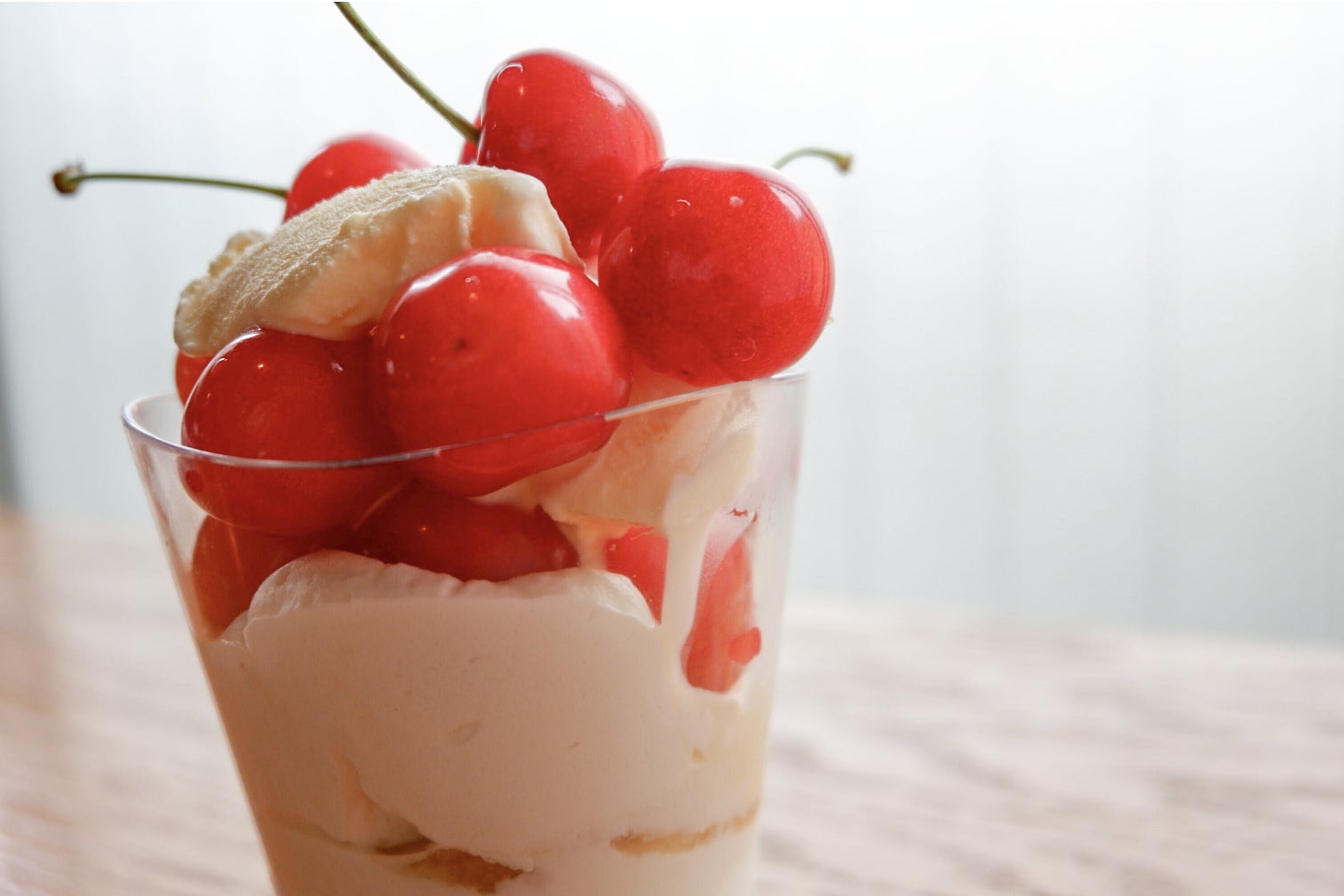 収穫した佐藤錦を東京に持って帰り、開催したパフェの企画