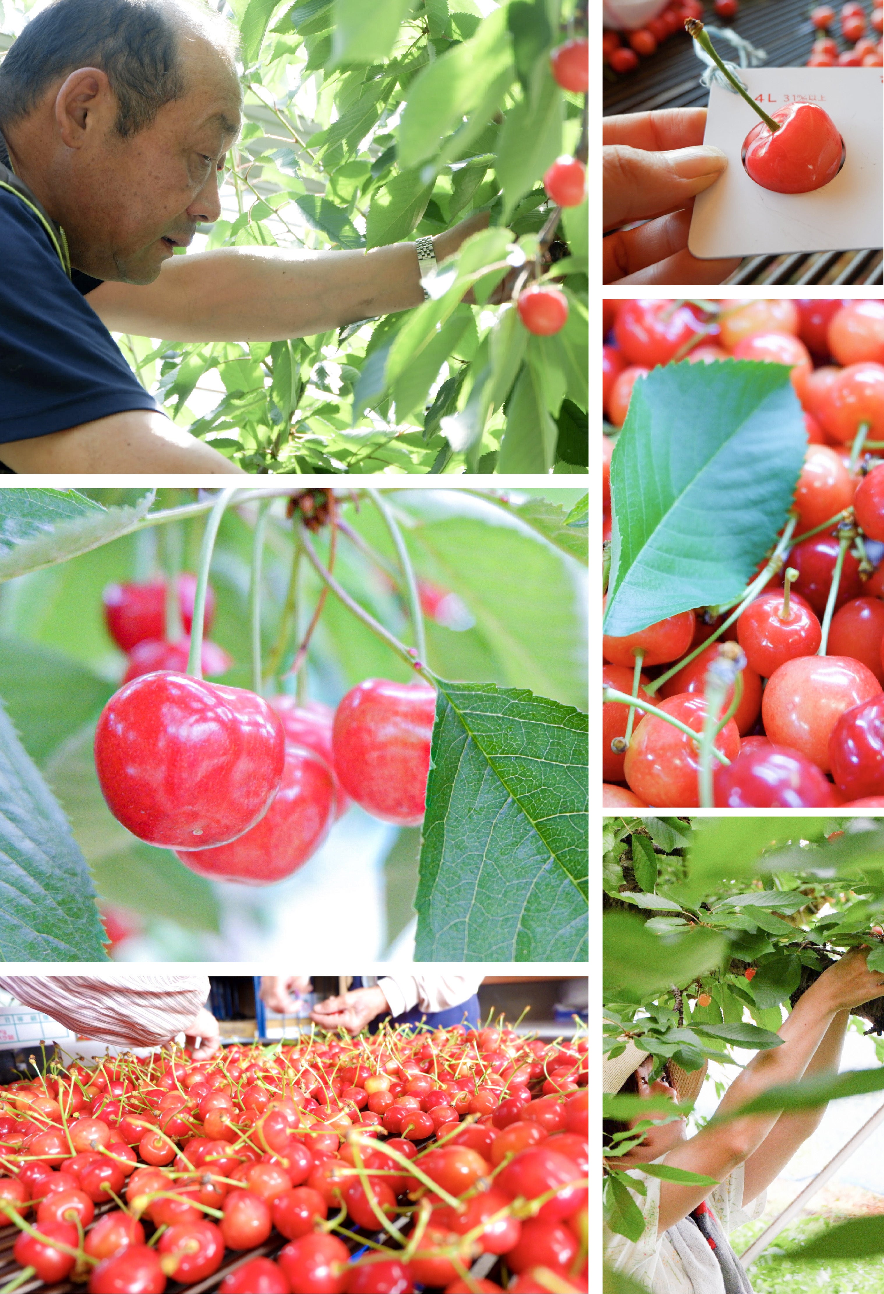 太陽の光にあたるとキラキラ輝く食べられる宝石たち。梅雨が本格的に始まると同時に1年に1回山形県天童市ではさくらんぼの収穫が始まります。なんとなく6月〜7月にかけてスーパーで見る「さくらんぼ」、実際の現地での収穫のシーズンは6月の中旬から後半までのたった2週間足らず。同じさくらんぼでも、収穫する地域が違うので1、2か月間収穫できると思われがちですが実際に現地での収穫になると、わずか2週間程度なのです。