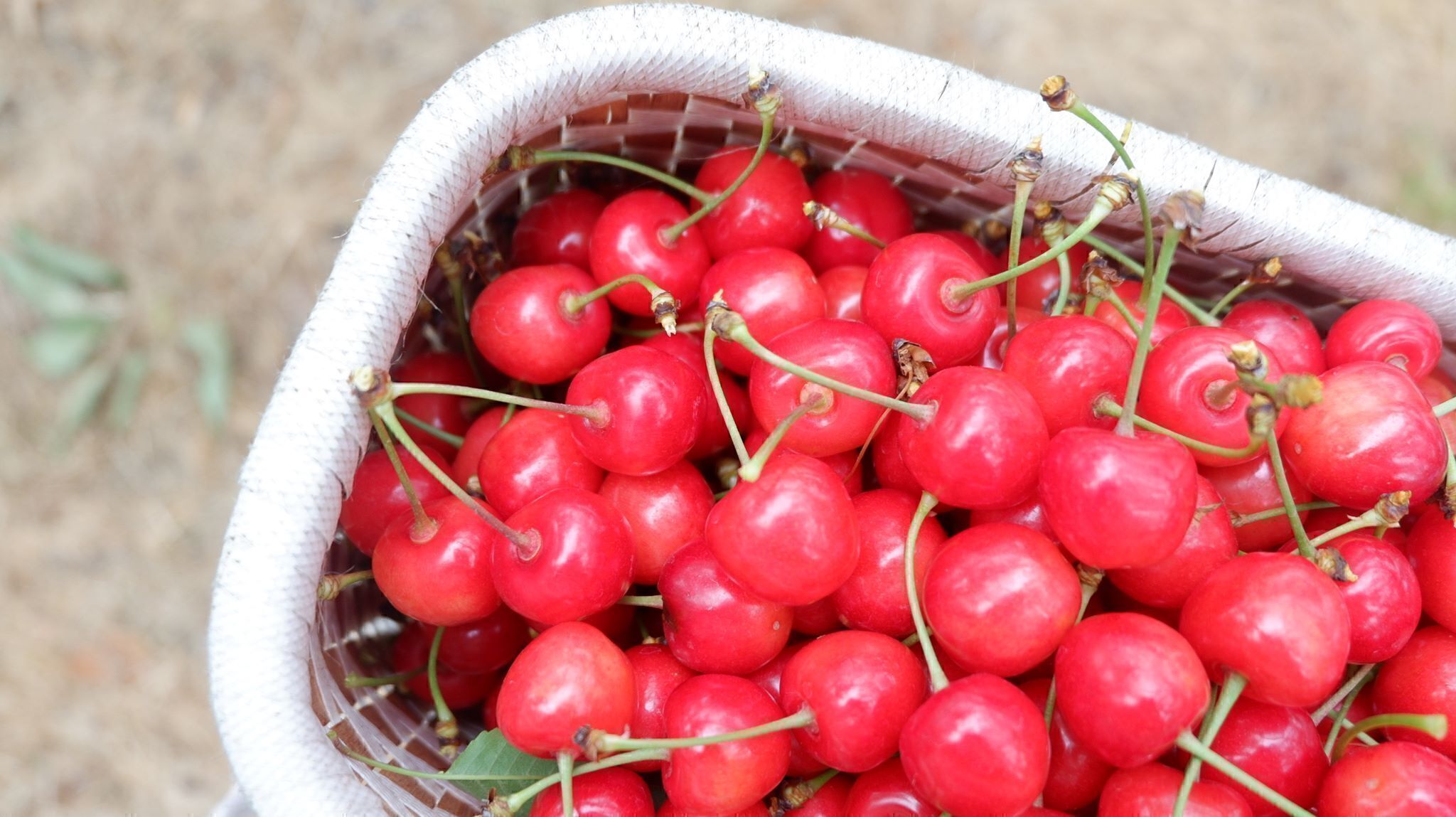 小座間さんが丹精込めて育てたさくらんぼを収穫する様子