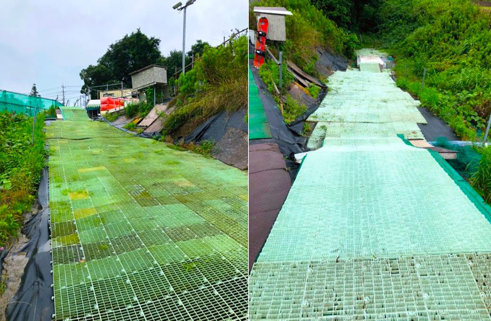 人工芝もグラウンドトリックに適した、芝の選定をして、すらしてエッジも効かせてトリックができる施設を目指します、その為の素材のテストもグラウンドトリックのサポートライダー達と実験、検証しながら作り上げていきたいと思っています。