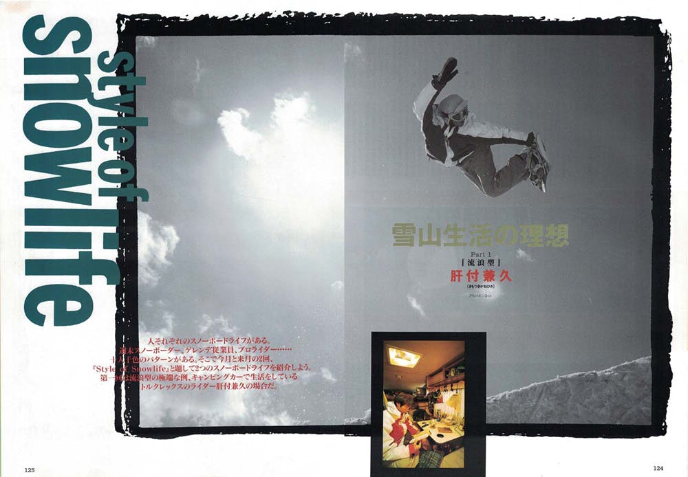 1996年カムイ御坂スキー場でディガーを勤める。昼間は滑って練習し、夜はスキー場でハーフパイプを作り整備。スキー場の救護室のベットや車検の切れたライトバンの荷台にサマーベットを置きそこで寝泊まり、売店の賞味期限切れの試供冷凍食品を分けてもらい食べ、毎日ハーフパイプの整備が終わると疲れきって、びしょびしょのウェアと防寒コートに濡れたブーツのままライトバンの荷台に寝る毎日、朝起きるとブーツもベンチコートも凍っている中、起きたらそのまま滑るという環境で頑張って練習していました。今思えばそれだけ夢中だったんでしょうね。笑