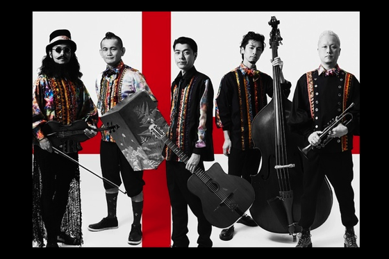 我々は、『新時代のジプシージャズ』を創造する、トランペット・バイオリン・ギター・ベース・パーカッションからなる五人組。上のアーティスト写真に重なった▶の再生マークをクリックしていただくと、今年5月にリリースしたアルバム『B』から、3曲をフル試聴していただけます。