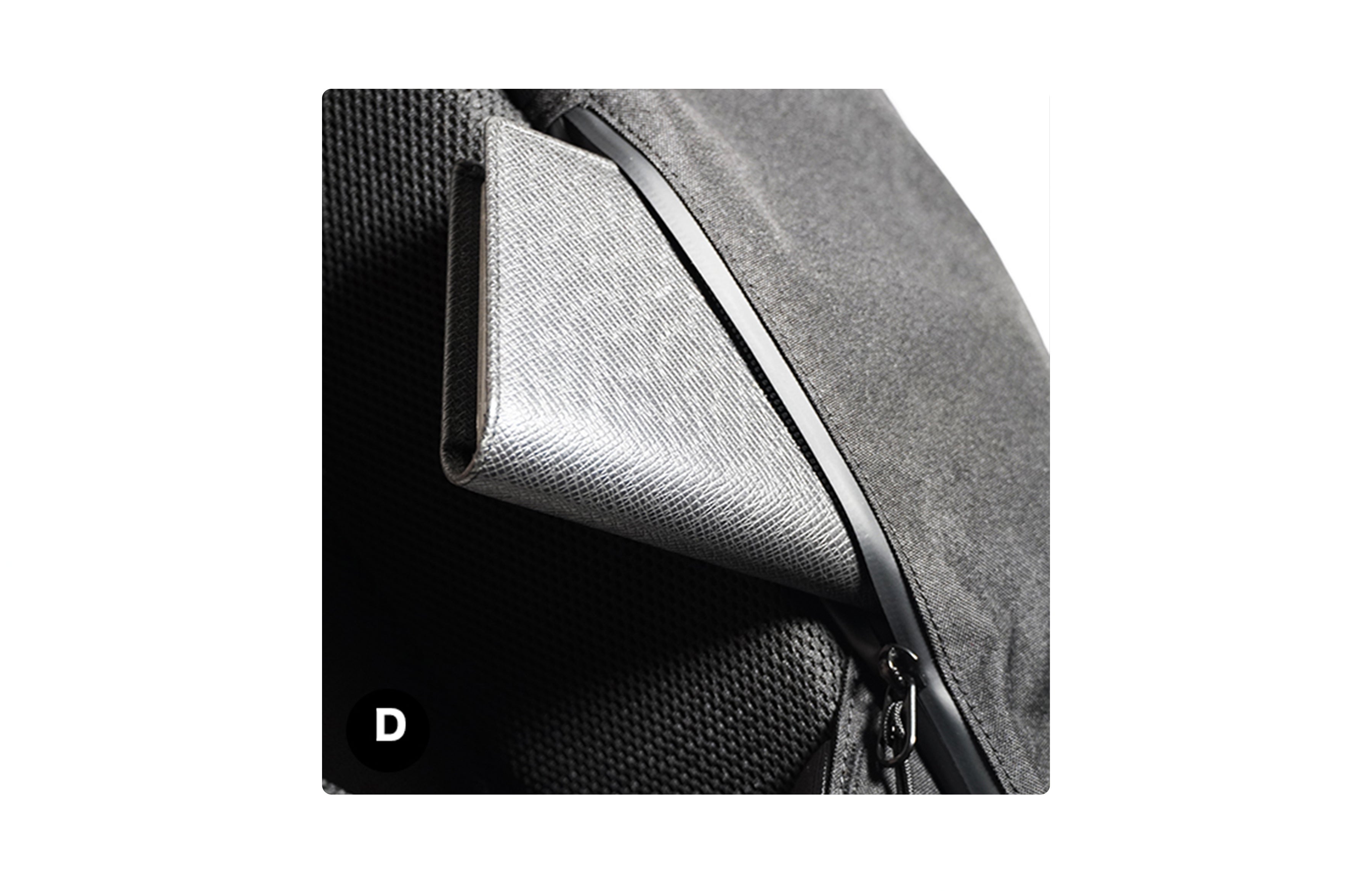 収納D:背面隠しポケット 大事なものは裏側に。これで安心、ポケット。