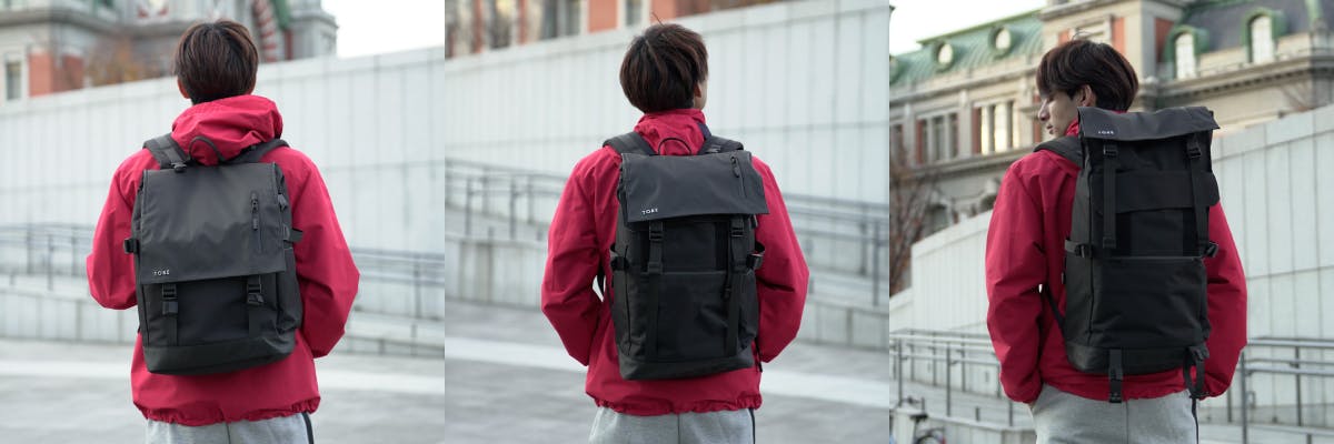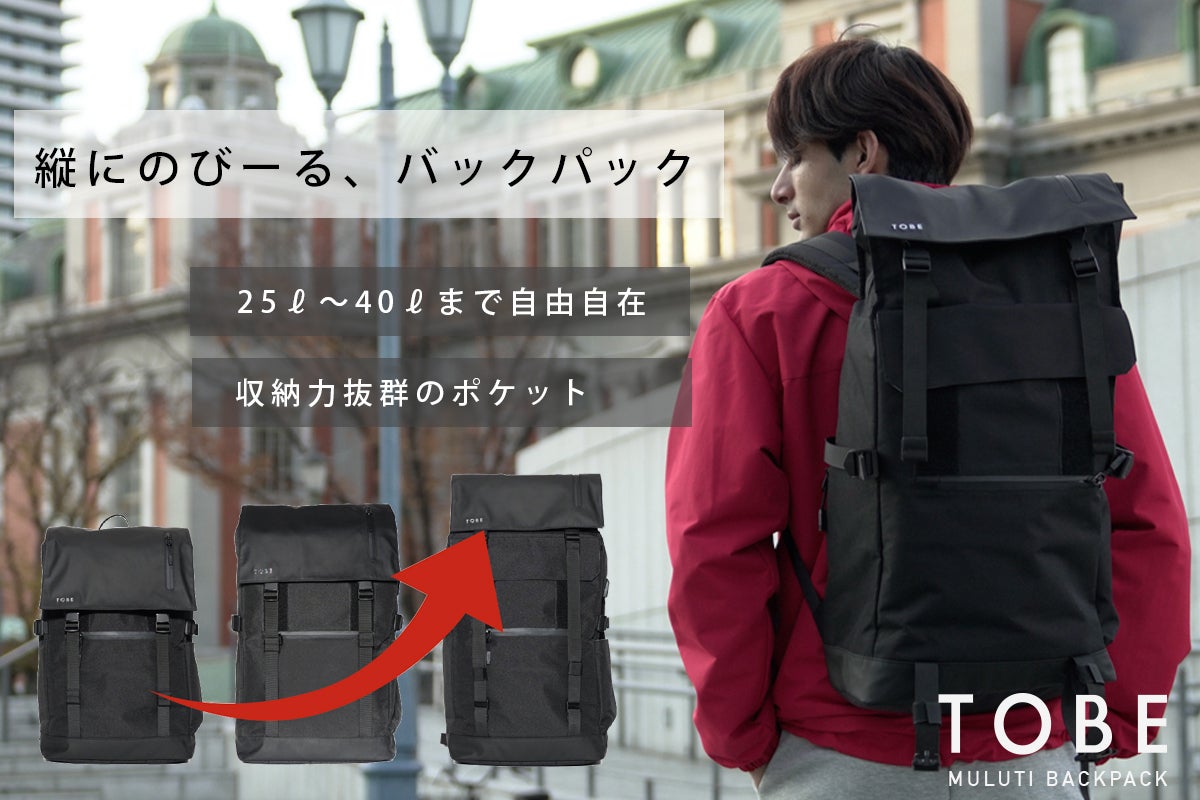 「TOBE万能バックパック」はシンプルながら型崩れしにくく背負いやすい機能性とデザイン性を追求したアイテムです。ビジネスやレジャーにも最適!