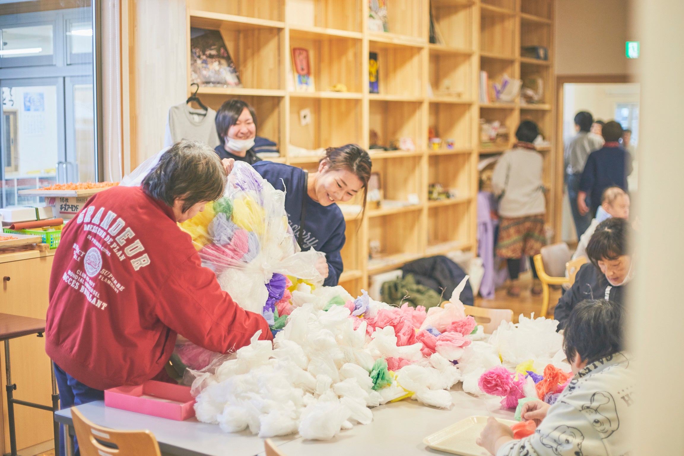 2019年夏、商店街に飾ってあった七夕飾りを譲り受けました。「TANABATA PAPER」の材料として採用したのは、吹き流しの頭の部分にあたる「お花紙」です。七夕飾りに使われるお花紙は、ところどころキラッとした光沢紙が混ざる、とても綺麗な紙です。この写真は、ハイエース一台分のお花紙が南三陸町のNOZOMI PAPER Factoryに運ばれた瞬間。カラフルで、どこかたのしげです!