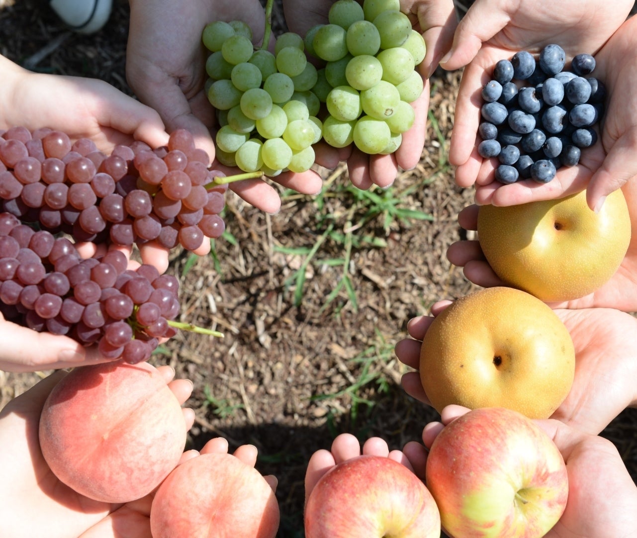1年中くだもの狩りができるよう、15種類150品種の果物を栽培