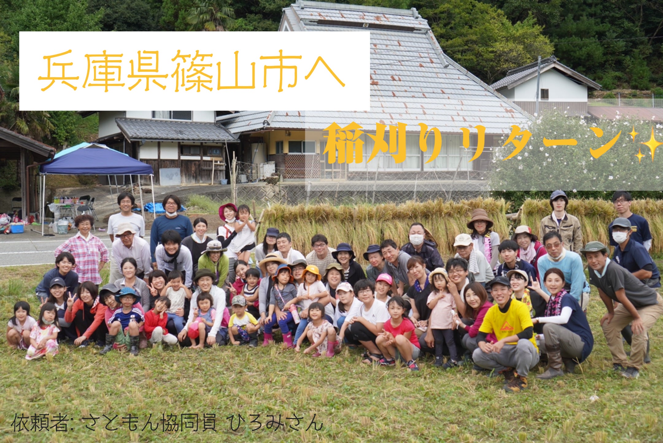 2020/09/17 19:37みなさん、こんにちは。「あなたの”挑戦する姿”を推しに行く、撮影活動を始めたい!!」のかつひなです。今回は撮影リターンを購入して下さった、兵庫県篠山市にてNPO法人さともんの活動をしているひろみさんを訪ねてきました。是非最後までお楽しみください!【Day1】駅についたのは午後17時。食事を一緒にとって、車でひろみさんの住む古民家へ。曲がりくねった山道も華麗な手さばきで登っていきます。ひろみさんの家に到着して荷物を置いて、さっそく私たちは『ライトセンサス』に出かけました!『ライトセンサス』とは、車の内側からライトの光で外を照らし、動物たちの目を光らせて発見する活動のことです。さぁ、ライトを持って、Let's go~~~~~~~~~ぉぉぉぉぉおおお?⁉⁉⁉!鹿が?!こんな近くに・・・・( ゚Д゚)アワアワ篠山では鹿や猿、イノシシなど害獣が多く民家や畑まで降りてきてしまうので、こんな道端でも簡単に遭遇してしまうそうです。事実、野生動物による農作物の被害総額は年間164億円だとか…!!ひろみさんは、地域活性化と同時にさともん活動の一環として害獣対策も行っているそうです。動物も人も安心して暮らせる森を作っているなんて、素敵ですね˖✧↓ひろみさんの活動が見れるInstagramはこちら!Facebookはこちら!本日はひろみさんのご厚意により、森を車の中から見させていただきましたが、明日が早かったので早々にお休みしましたZZZ【Day 2】「あぁ、朝ってこんなに静かだっけ?」田舎に泊まると車通りも少なく、一面田んぼなので、静かに陽がまっすぐ部屋に入ってきました。誰にも邪魔されずに「今」を独り占めできる感覚って、不思議ですね。とっても素敵な朝を過ごさせていただきました!ちなみに篠山には、元宿場町の名残を保護している重要伝統的建造群保存地区があり、文化・歴史を肌で感じられる古い町並みがあります。一棟貸しの宿もあるので、是非皆さん泊まりに行ってはいかがでしょうか?(^^♪朝の目覚める一杯。さて、コーヒーを飲んで目を覚ましたら、ひろみさんの車で稲刈りが行われる田んぼへGo!30分ほど山道を車で走ったところで、何やら数台の車が黄金に光る田んぼの向かいに止めてあるのが見えてきました。見知らぬ場所、見知らぬ団体の活動に始めて参加する私は若干緊張気味で、「変な人だと思われたらどうしよう…(-_-;)」と内心ビビっていましたが、「こんにちはー!」笑顔で関係者各位にあいさつするひろみさん。とひろみさんが明るい笑顔と挨拶を関係者の皆様にして、皆さんもそれに応えている様子を見て、「あ、今日はきっと上手くいくぞ!」と思うことができました。なぜなら、たった一言の挨拶でひろみさんがこの団体から大切にされている存在だと感じることができたからです。ひろみさんを受け入れて大切にしている方々なら、信頼がおけるぞと不安も一瞬で吹き飛びました。(ひろみさんはめちゃいい人。)ふぅ、やっとここまで来れた・・・にょへ~活動開始は午前10時頃からで、参加者が集まった時点で今回の稲刈りと篠山の自然についての説明が行われました。子供たちのチャチャを交わしながら、説明する主催者。真剣に説明を聞く参加者達。ここ篠山ではお米の他に黒豆が盛んに育てられていて、その畑もこれから増やしていくとのことでした。さらに黒豆畑のオーナーになって収穫したり、食べたりできる企画も行っているそうなので、ぜひHP(←こちら)をチェックしてみてください!そして、全体の説明が終わったら稲刈りの方法についてのレクチャーが行われました。稲をつかんで、鎌で根元から数センチのところを刈り取る。老若男女問わず、皆さん真剣に説明を聞いていました。私もやるぞ。さぁレクチャーを受けたら、早速ここから皆で協力して稲を刈り取っていきます!熱い中みんなで稲を刈る様子を写真に撮ってきたので、是非ご覧ください。↓↓↓スタート!親子で協力して稲を束ねています。稲の束ね方をレクチャーしています。県外から参加して下さったお姉さま方。黙々と稲を刈っていく少女。稲を干している青年。親子で稲を刈っています。稲を収穫出来てとても嬉しそうなひろみさん。お米が大好きなのでしょうか。ちびっこ達も頑張って稲を干しています。稲を刈るのがキツくて、バテている私。これらの写真はほんの一部ですが、皆様カメラに向かって素敵な表情をして下さっていたので、写真を撮るのがとても楽しかったです!稲刈りは体力的にとても大変でしたが、これが誰かのおいしい笑顔に変わると思うと自然と力が湧いてくるようでした。全ての農家さん、ありがとう!!!!!!そして稲の収穫がひと段落した後は・・・・綺麗な川で、生き物探しタイム!!!(ひゃっふぅ~~~!!)久しぶりにこんなに澄んだ川に出合ったので、テンション爆上がりでした。皆さん、各々に網やバケツを持って生き物を捕まえては観察していました。水の中を覗き込もうとする少年。橋の上から川の中を観察する人達。竹
