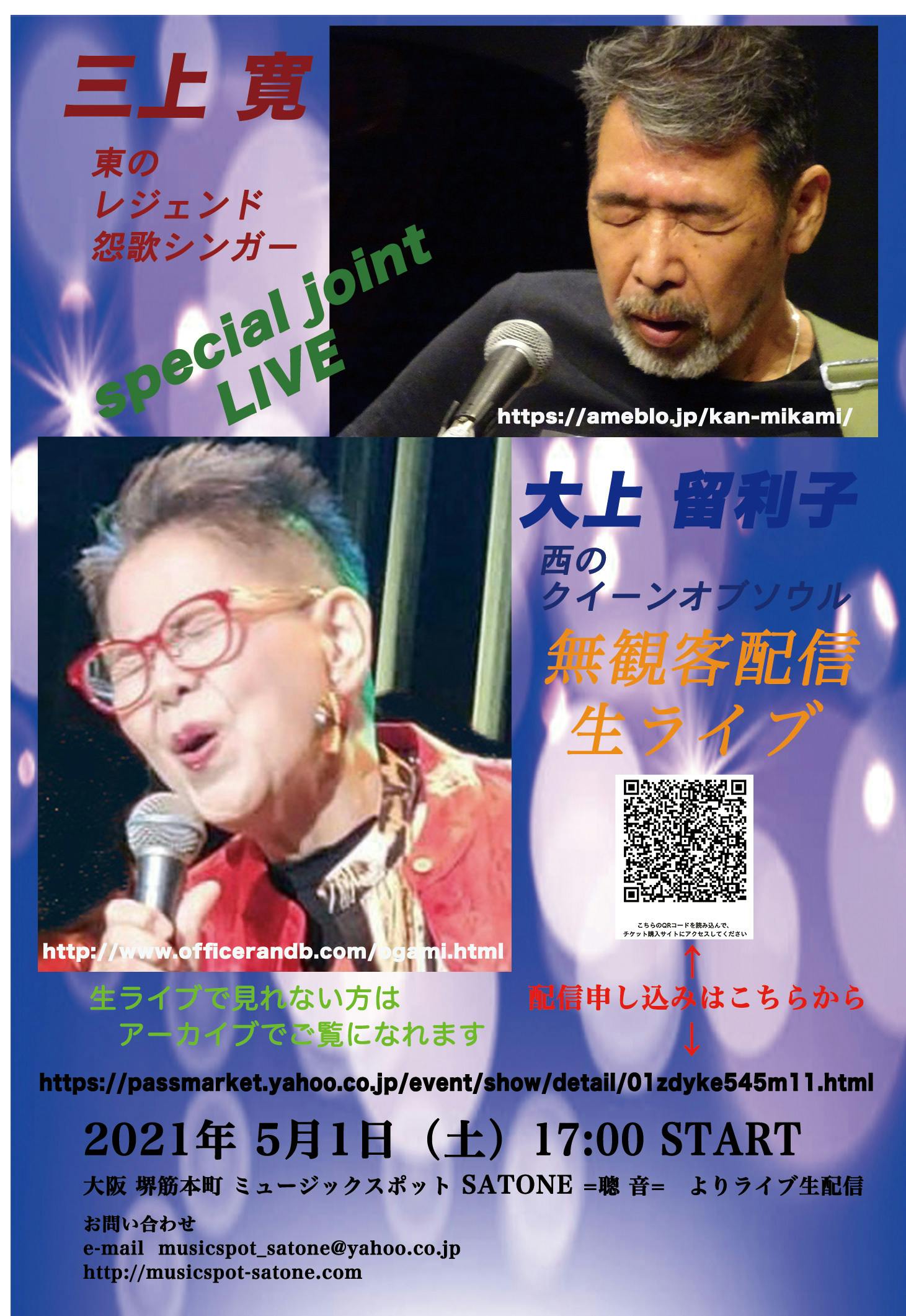 2021/04/26 17:28三上寛ファンのみなさま お元気でいらっしゃいますか?三上寛ブログ管理人の岸田コーイチです。昨年は三上寛クラウドファンデイングにご協力いただいて本当にありがとうございました。三上寛、今年もぼちぼちと活動をしております。今年4/25より5/11まで、コロナ渦による三回目の緊急事態宣言が出てしまいました。三上もいつものように関西ツアーを行おうとした矢先のことであり、またか、という感じではありますが、ツアーのほうは行うことといたしました。ライブの予定は大幅に変わりました。その中でも、岸田が運営する「ミュージックスポットSATONE」では5/1(土) 17:00より、三上寛の無観客ライブ生配信を行います。元気な三上寛をみなさん 是非ご覧ください。そしてこのライブは東のレジェンド 怨歌シンガーと西のクイーンオブソウルによるスペシャルジョイントライブになります。そのジョイント相手は「なにわのクイーン・オブ・ソウル」です!!大上 留利子日本のRock&Soulの歴史は彼女なしでは語れない。Japanese Lady Soul の草分け的存在。 70年代半ば強烈な個性でミュージックシーンに登場。新生ソウルバンド、スターキング・デリシャスで、YAMAHA 8・8ROCKDAYに出場、グランプリ及びベストボーカル賞を受賞。1979年に「大阪で生まれた女」を発売。以後、関西を中心にゴスペルからジャズ迄の幅広い歌でライブ活動を展開。「なにわのクイーン・オブ・ソウル」と称されるhttp://www.officerandb.comこのゴールデンウイークいろいろなイベントが無くなり、おうち時間ができた人、是非この配信ライブをご覧ください。リアルタイム時間に見れない方も大丈夫。アーカイブにて一週間、好きな時にご覧いただけます。有料ライブ配信となります。詳しくはこちらから ↓ お申し込みお待ちしております。https://passmarket.yahoo.co.jp/event/show/detail/01zdyke545m11.html今年もどうぞ三上寛の応援を是非よろしくお願いいたします。なお6月に東京で、昨年の録音場所となったMANDA-LA2にて大きめのライブの予定を考えています。また追ってお知らせいたします。2021年 4月26日 三上寛ブログ管理人 岸田 コーイチ===============================================三上寛の最新ライブスケジュールは三上寛ブログをご覧くださいhttps://ameblo.jp/kan-mikami/ もっと見る11/1 クラウド感謝ライブのURLを贈ります