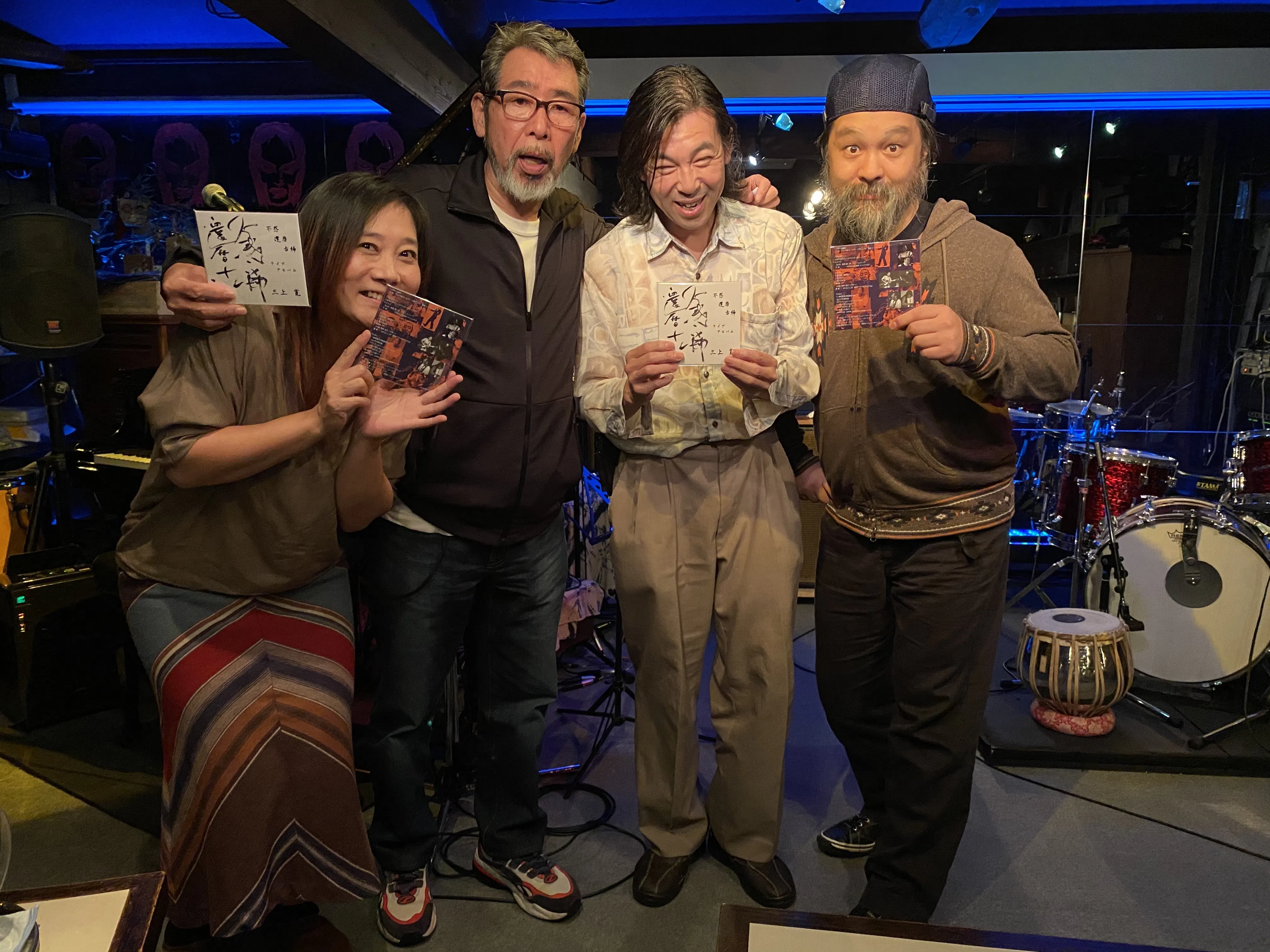 左から、あかぎしほ 、三上寛、岸田コーイチ、