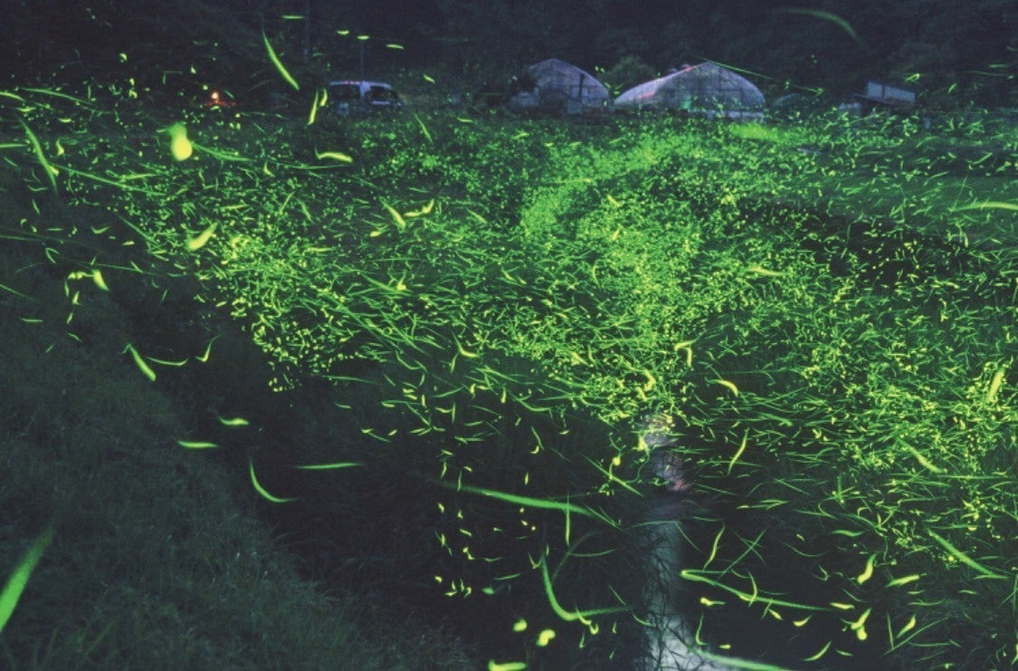 夏、ゆったりと飛び交う蛍の幻想的な光景(を、庭で愛でながら飲むビール)