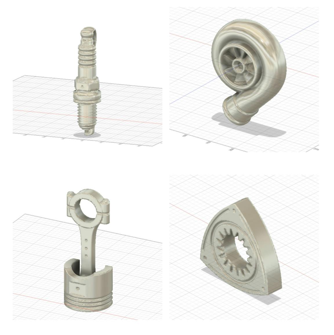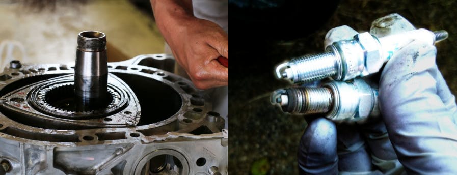 エンジン内部を見て、ジュエリーに応用できるカッコいい部品がないか探します。