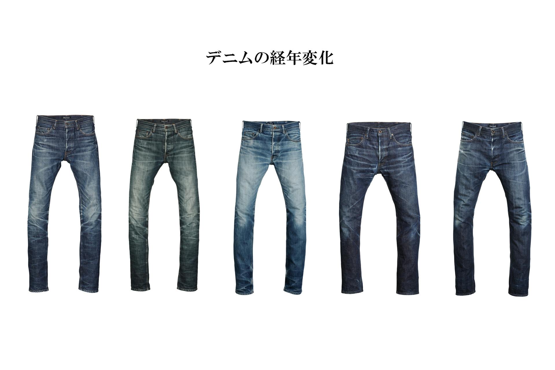 ご存知の方も多いとは思いますが、デニム生地の特徴であり、ジーンズの醍醐味でもあるのが経年変化による「色落ち」。最初は濃紺のジーンズが着用を続けるうちに、穿く人の体型やライフスタイルに合わせて表情を変え、自分だけのオリジナルの1本に仕上がります。
