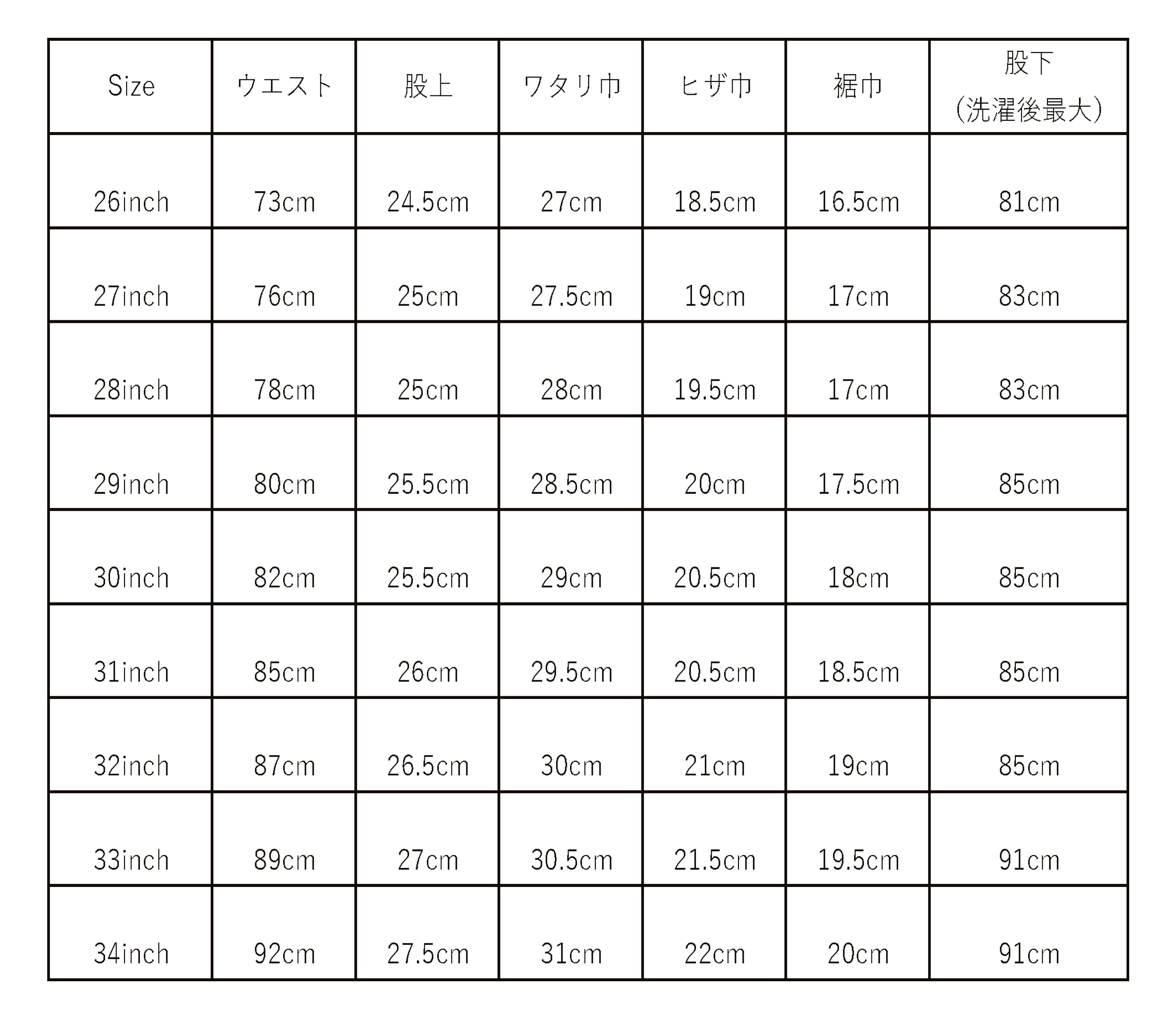 ※股下はご希望の長さでご用意します。ワンウォッシュでのお届けもオプションでお選びいただけます。