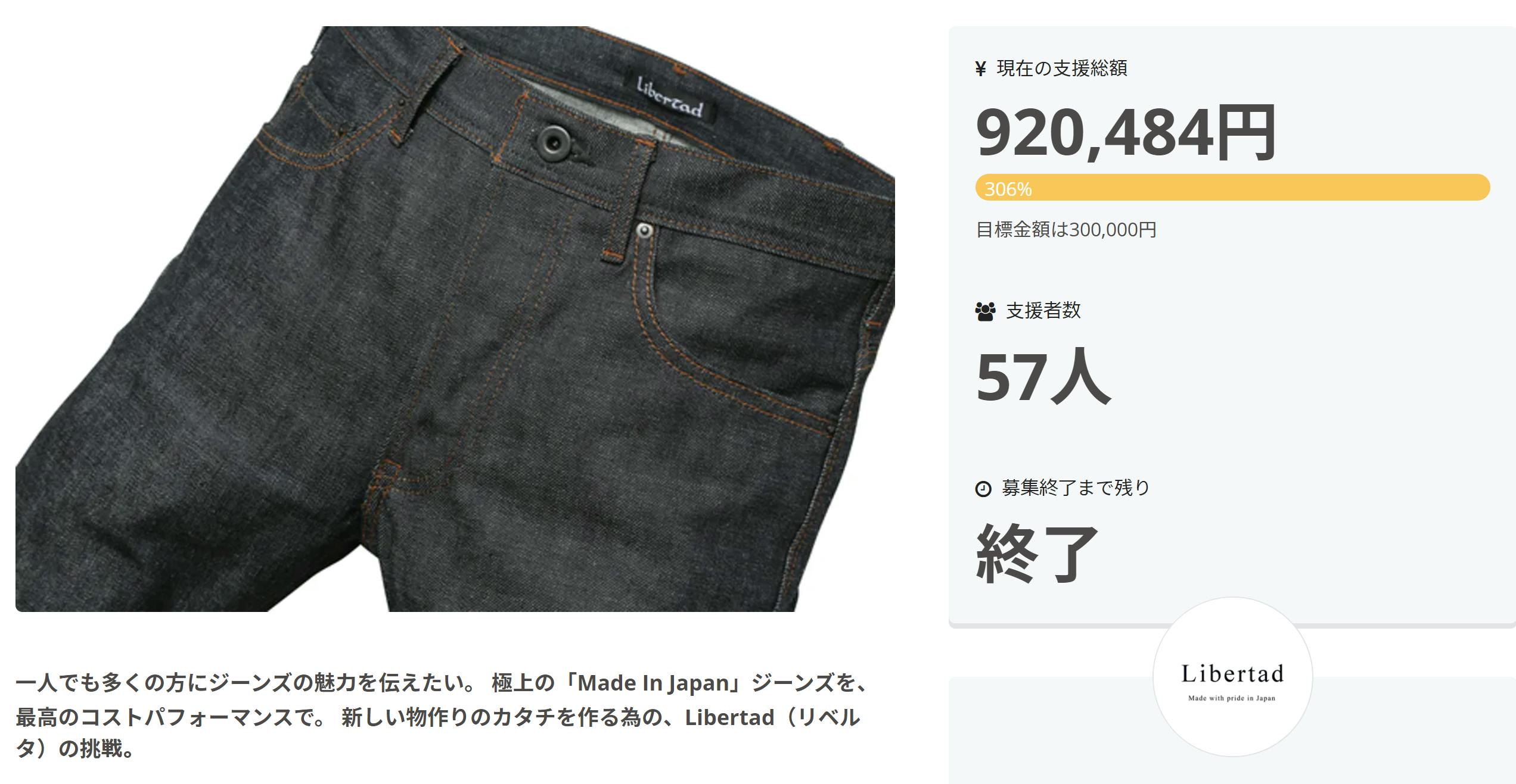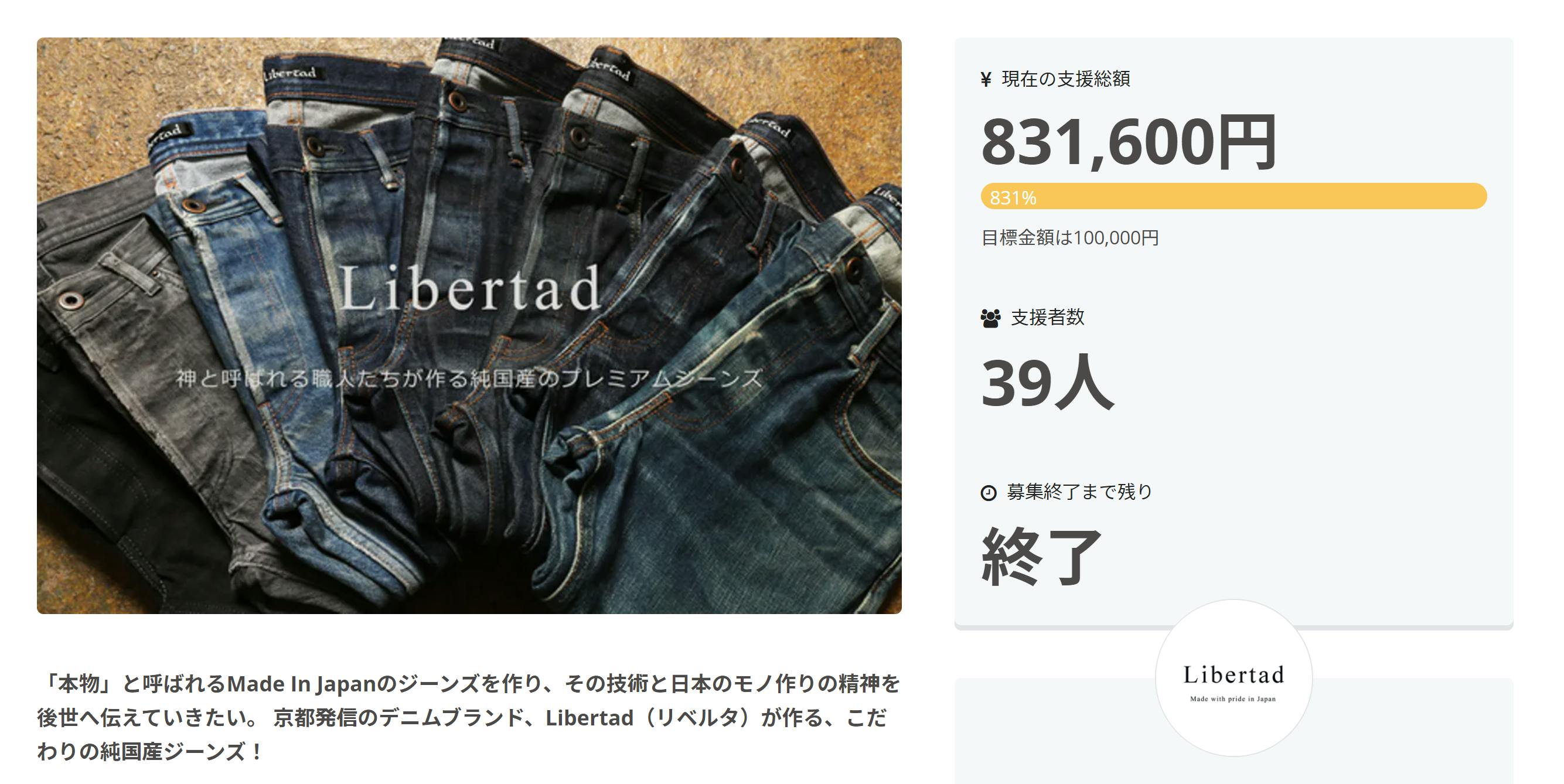 このプロジェクトで集まった資金は、現在生産をすすめている限定ジーンズ生産費用の一部として大切に使わせていただきます。