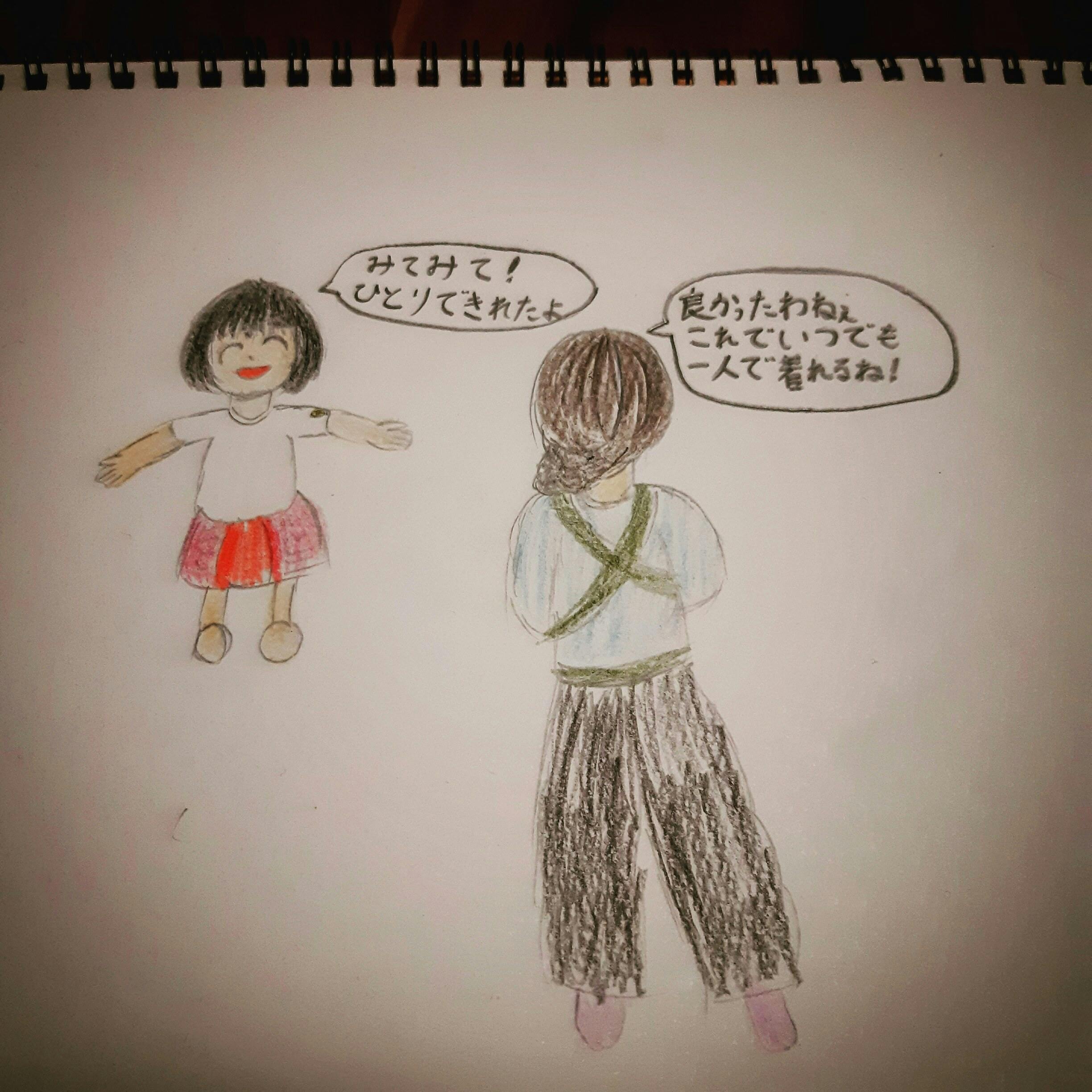 (上の画像は次女が描いた、Tシャツを着た親子のイメージだそうです)