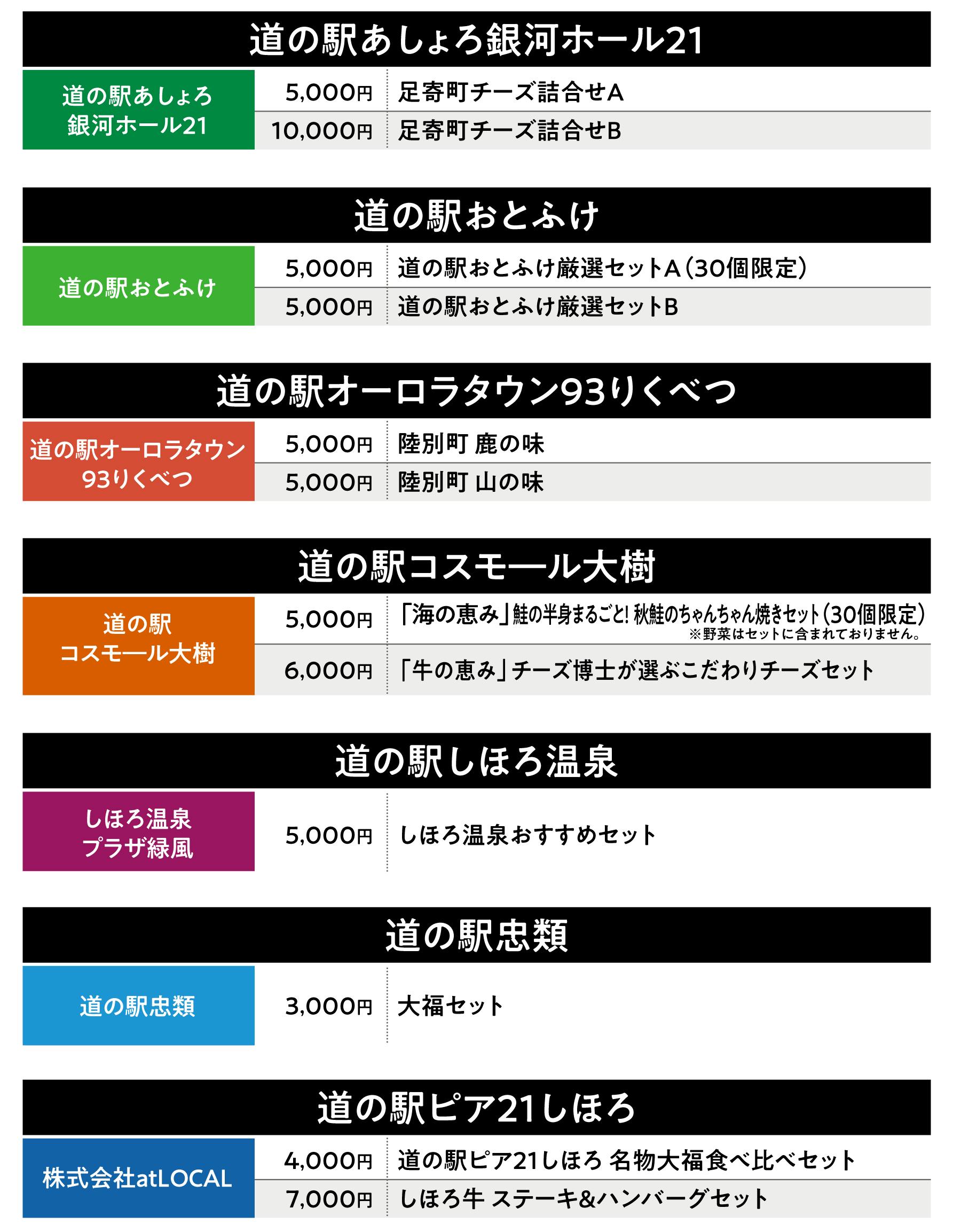 「釧路・根室編」につづき、今回は「十勝」の7つの道の駅に参加いただき、計12セットの商品をご用意いたしました。