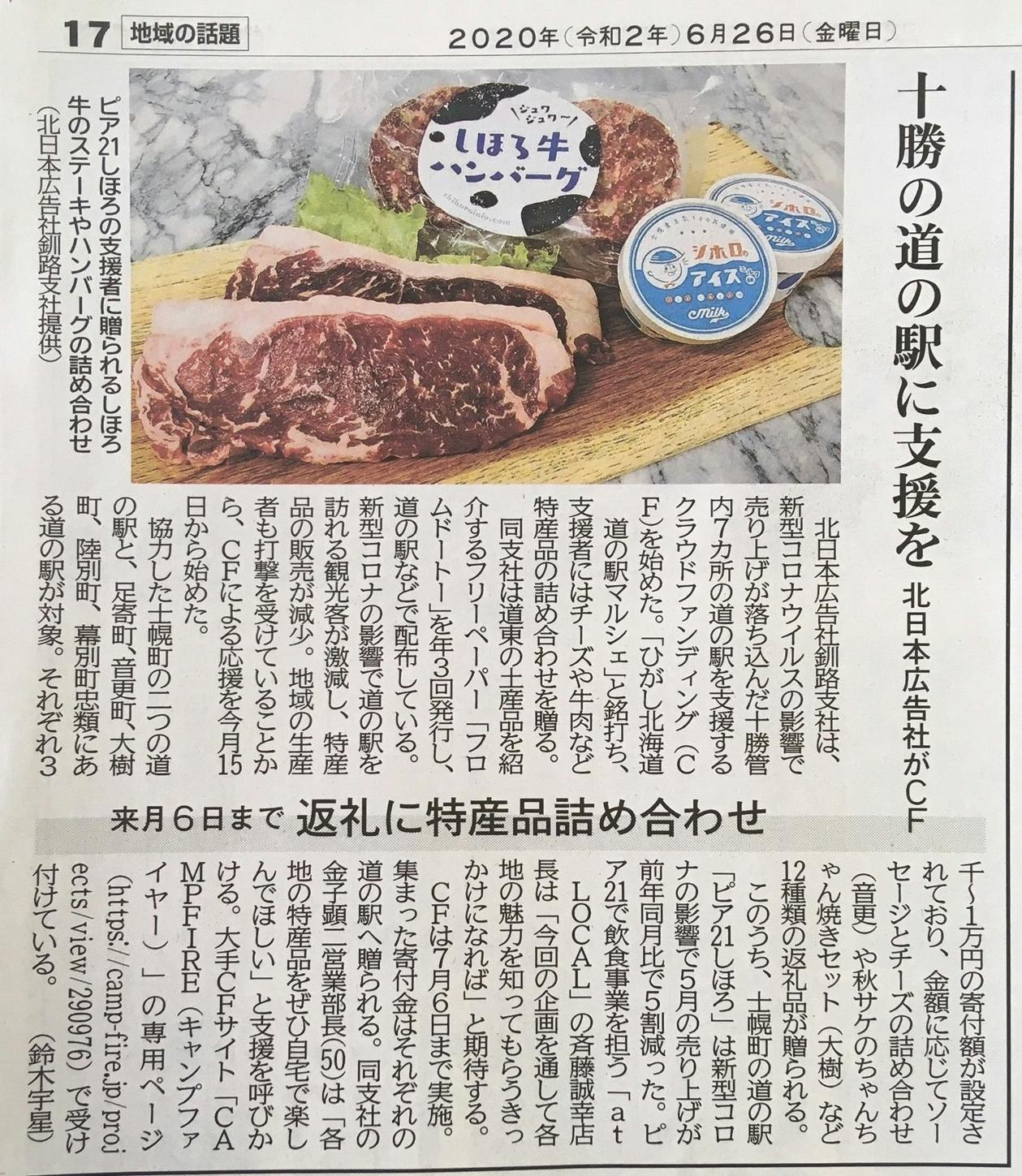 6月26日(金)の北海道新聞・帯広十勝版にて、「道の駅マルシェ・十勝編」をご紹介いただきました!
