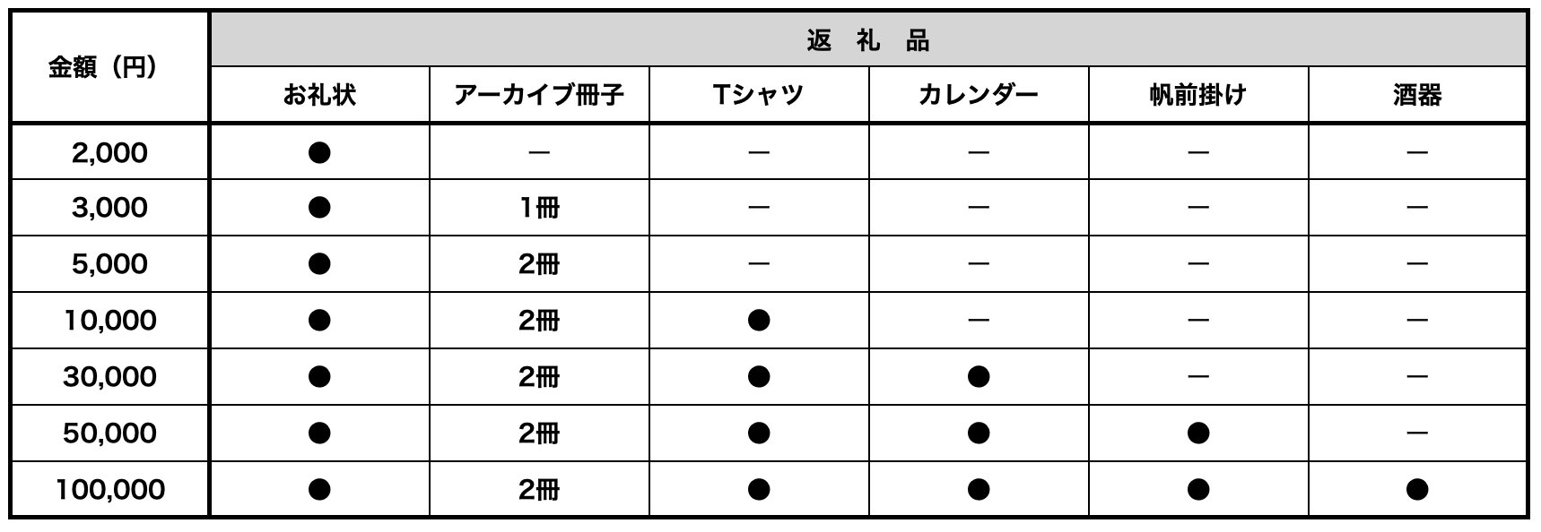・100,000円のご支援:応援委員会からのお礼状、仙台文化横丁アーカイブス誌の提供(2冊)、