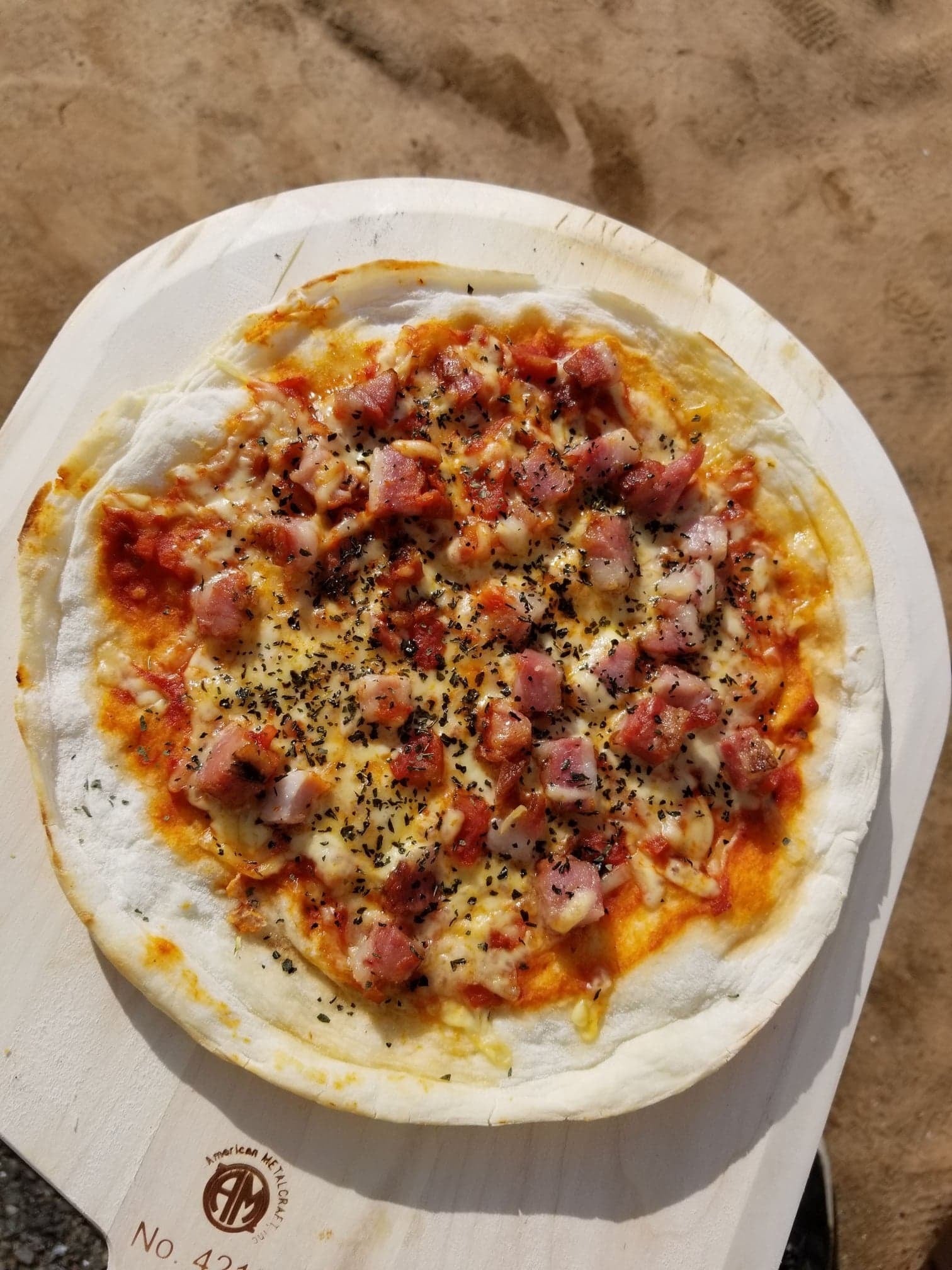 アレンジメニューとして、ハム焼を使ったピザも美味しいですよ!