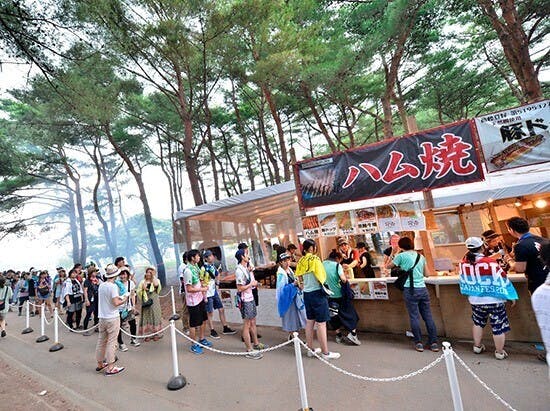 そして、このフェスに来たら行列に並んででも食べたいと言われる名物が、「ハム焼」と「メロンまるごとクリームソーダ®︎」なんです。ROCK IN JAPAN FESTIVALの公式ガイドブックにも、「二大名物」として紹介されているんです!