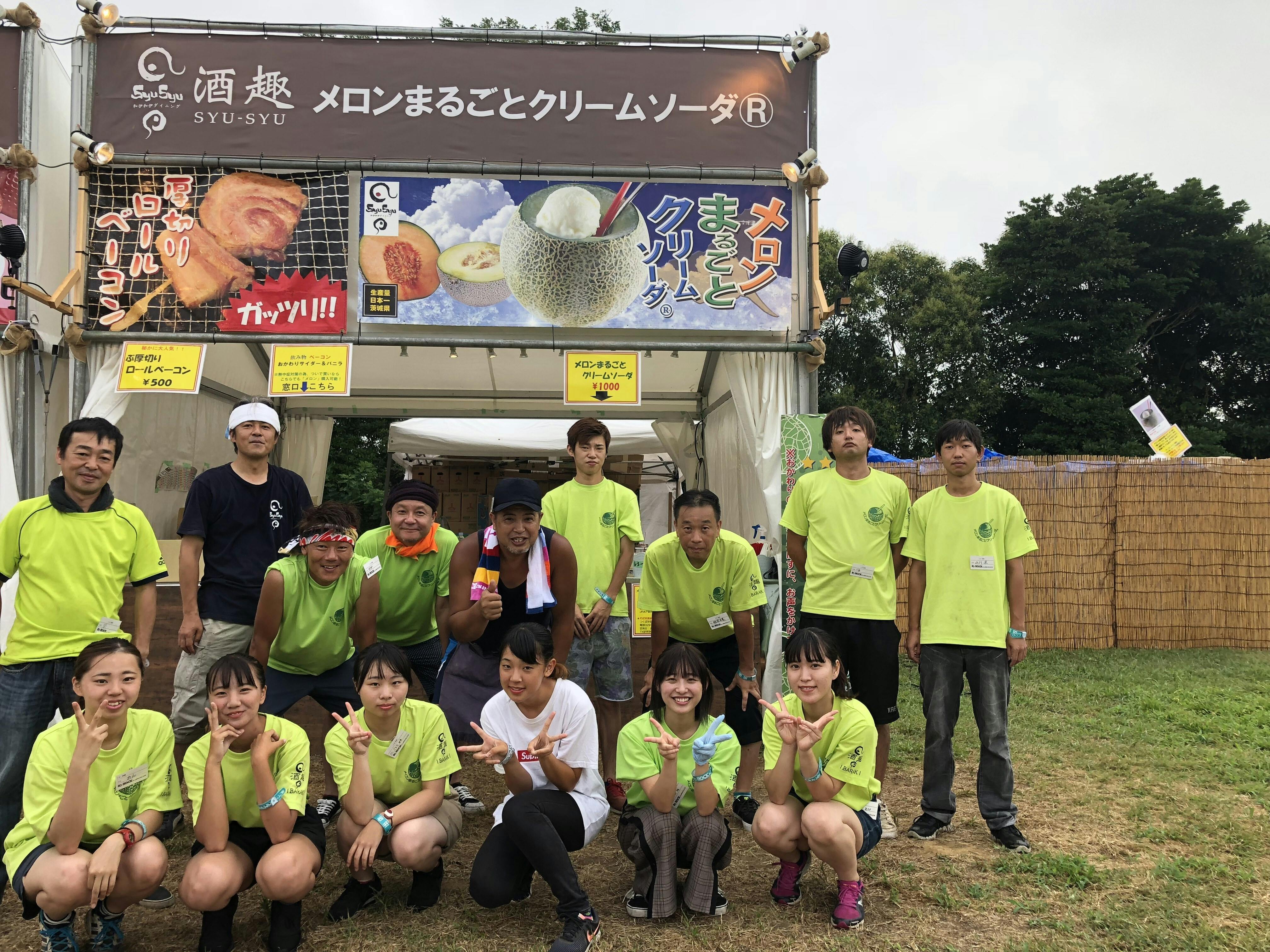 茨城県は、メロン生産量日本一!だけど知っている人は今も少ないのです。全国から若者がこれだけ集まるイベントって、ロッキンしかないな、と思って、茨城のものをアピールしたいと思いました。メロンをまるごと使って何かできないかな?本物のメロンにソーダを入れたらどうかな?と試作したら、メロンソーダになる!というわけで、狭き門の出店審査に「日本一のメロンをPRしたい」と申請して無事合格。