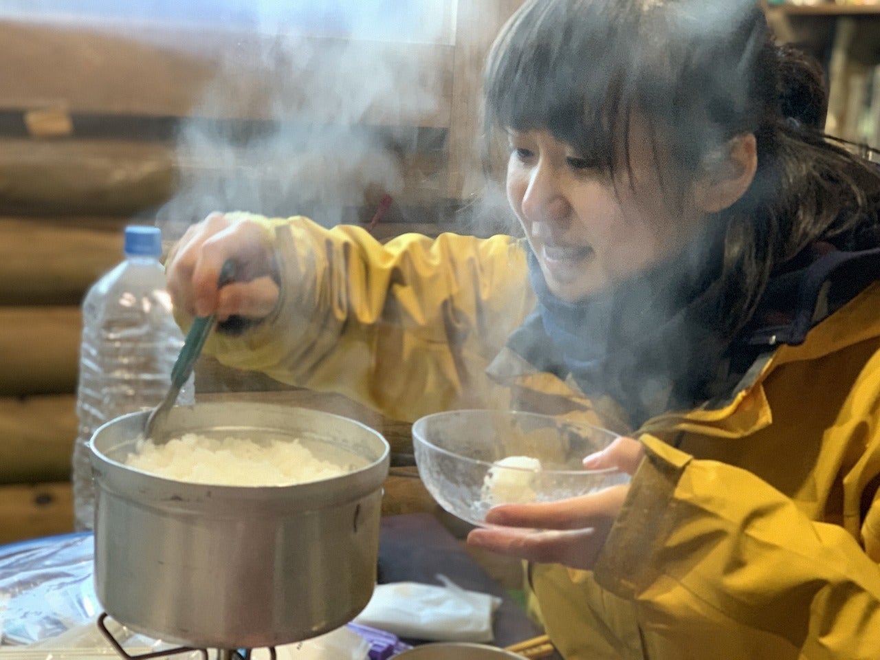 祖母山9合目山小屋でのご飯つくり
