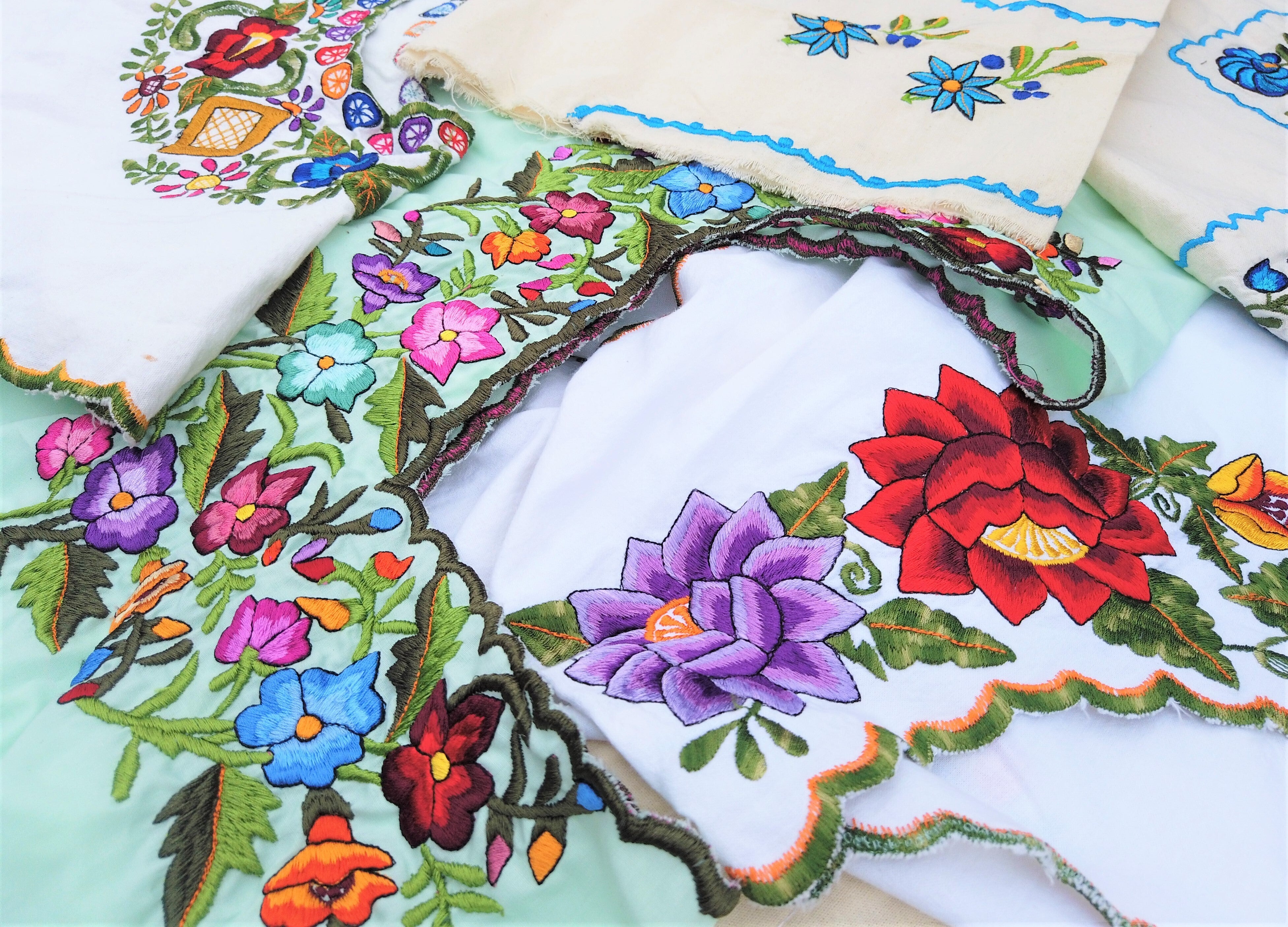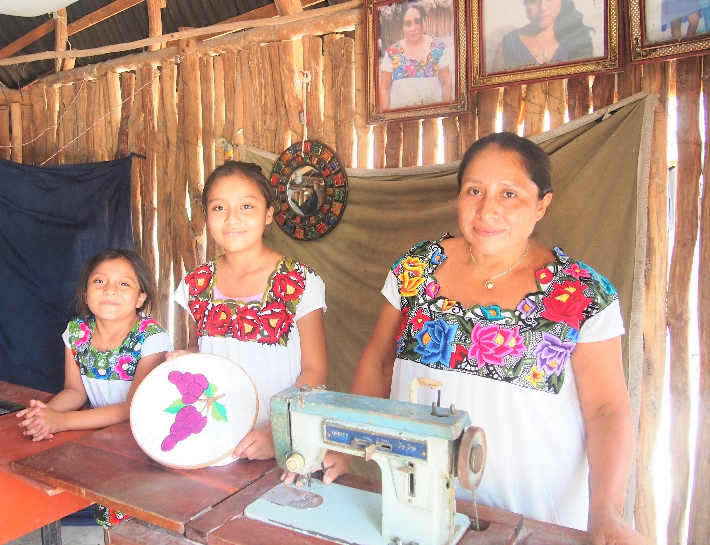 ユカタン半島のお土産として人気の高いイピル、胸に色鮮やかな刺繍が施されたブラウスやドレス、他クラッチバッグやポーチなどの刺繍製品は、村の女性達の内職によって製造され街のお土産屋や屋台、路上で販売されます。しかし、そこからの収入は刺繍に費やした時間を考えるとごくわずかなものです。さらに、カンクンなどの観光地には工場で大量生産された刺繍製品が入り込み、マヤの刺繍は価格競争に勝てずに厳しい状況に立たされています。
