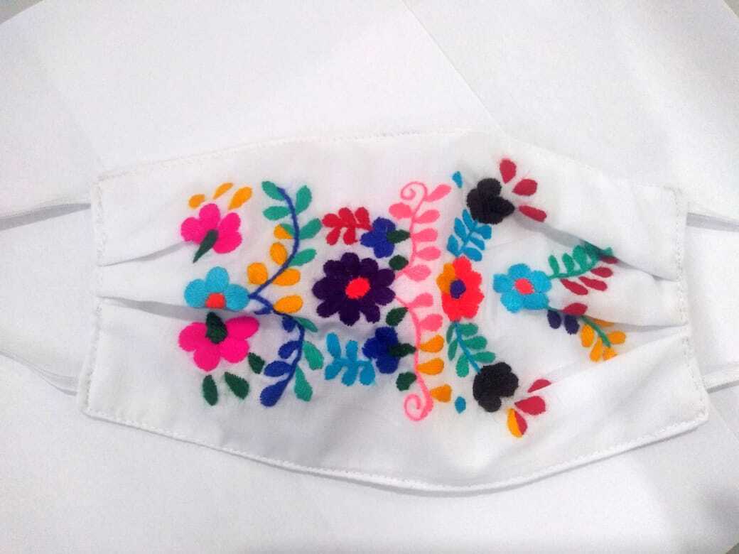 さて、何を開発しているか、、、正解はかわいい花柄の刺繍マスクです。