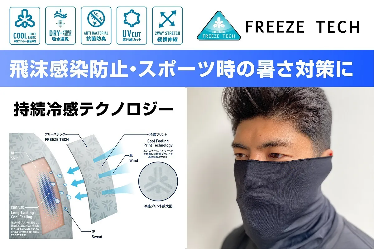 コロナの影響で例年以上に体調管理は重要です。VIVAネットワーク㈱で取り扱っている暑さ対策のための衣類である氷撃の【FREEZE TECH】には、首元の暑さ対策に最適な「ロングネックゲーター」という商品があります。このロングネックゲーターは伸ばすと鼻や口元まで覆うことができ、飛沫感染の防止にもつながります。