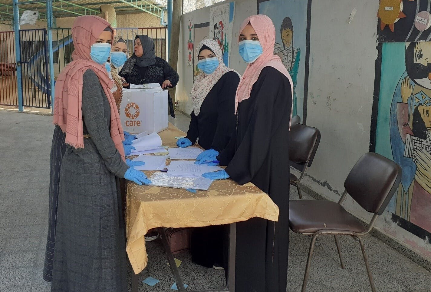 CAREパレスチナで、新型コロナウイルスへの対応の一環として、ガザ地区バージー難民キャンプに暮らす「女性リーダーシップ協議会」(WLC※) のメンバー5人は、バージーキャンプで最も脆弱な女性の難民たちに172の食糧の小包を配給するボランティアを行いました。