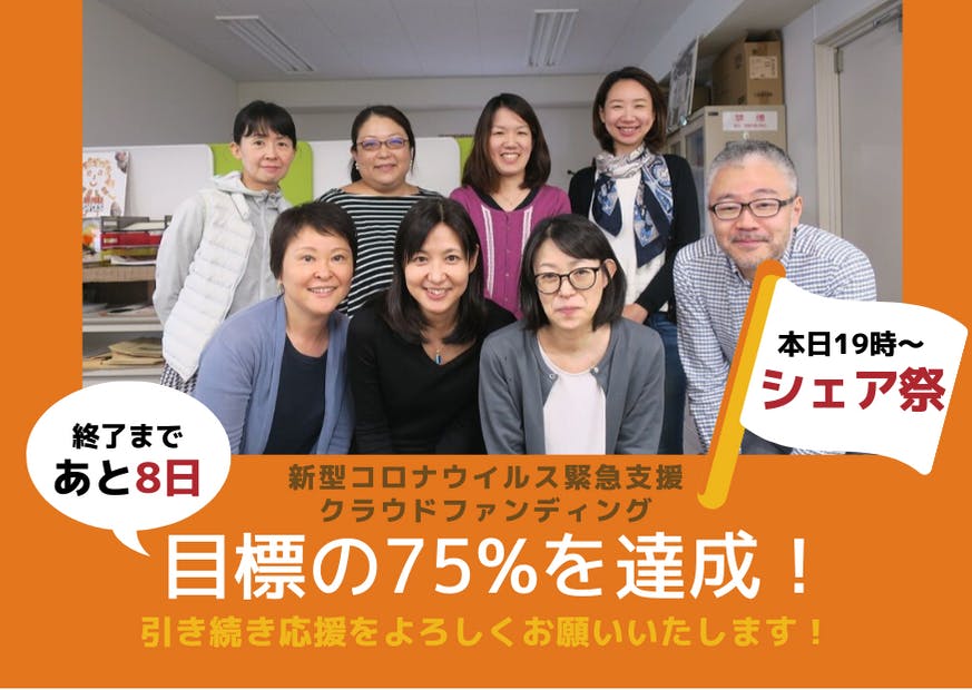 6月19日から始まった、新型コロナウイルス緊急支援のためのクラウドファンディングも、残すところ、あと8日となりました。