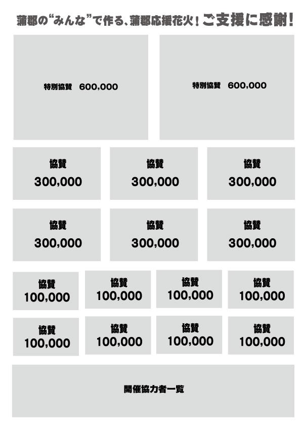 ※チラシ / ホームページ / YouTube / うちわ に掲載するロゴは、info@gamagori.loveまでご送付ください。また、ご協賛金額や総数に応じて掲載スペースの大きさが変動致します。