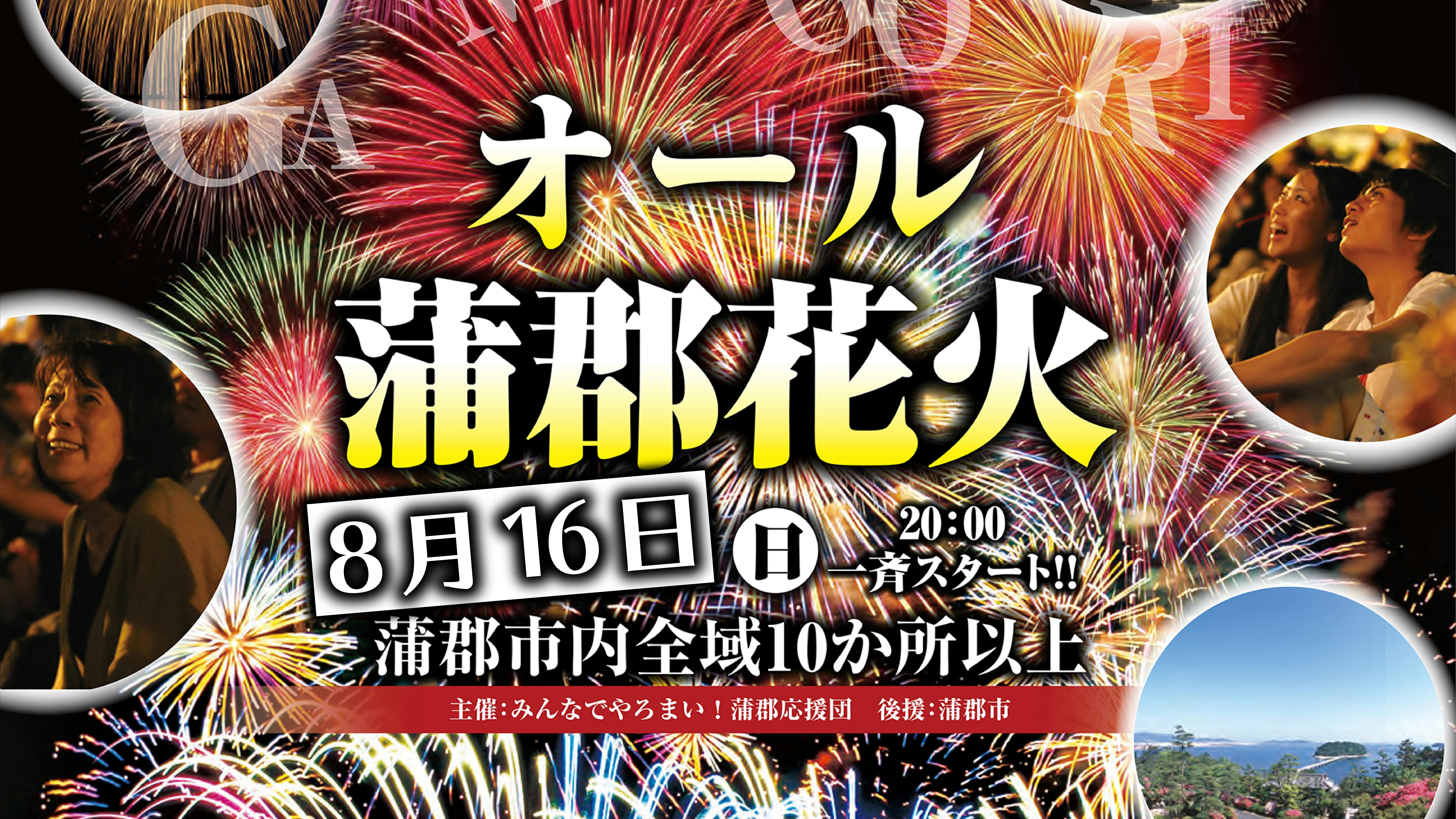 今年は中止になってしまった蒲郡まつり納涼花火大会が毎年行われる7月最終日曜日に、蒲郡中(じゅう)で花火を打上げます。コロナ禍のストレスや不安をぶっ飛ばすくらい、花火を打ちまくって、蒲郡の皆様へ元気と明日への活力をお届けします。