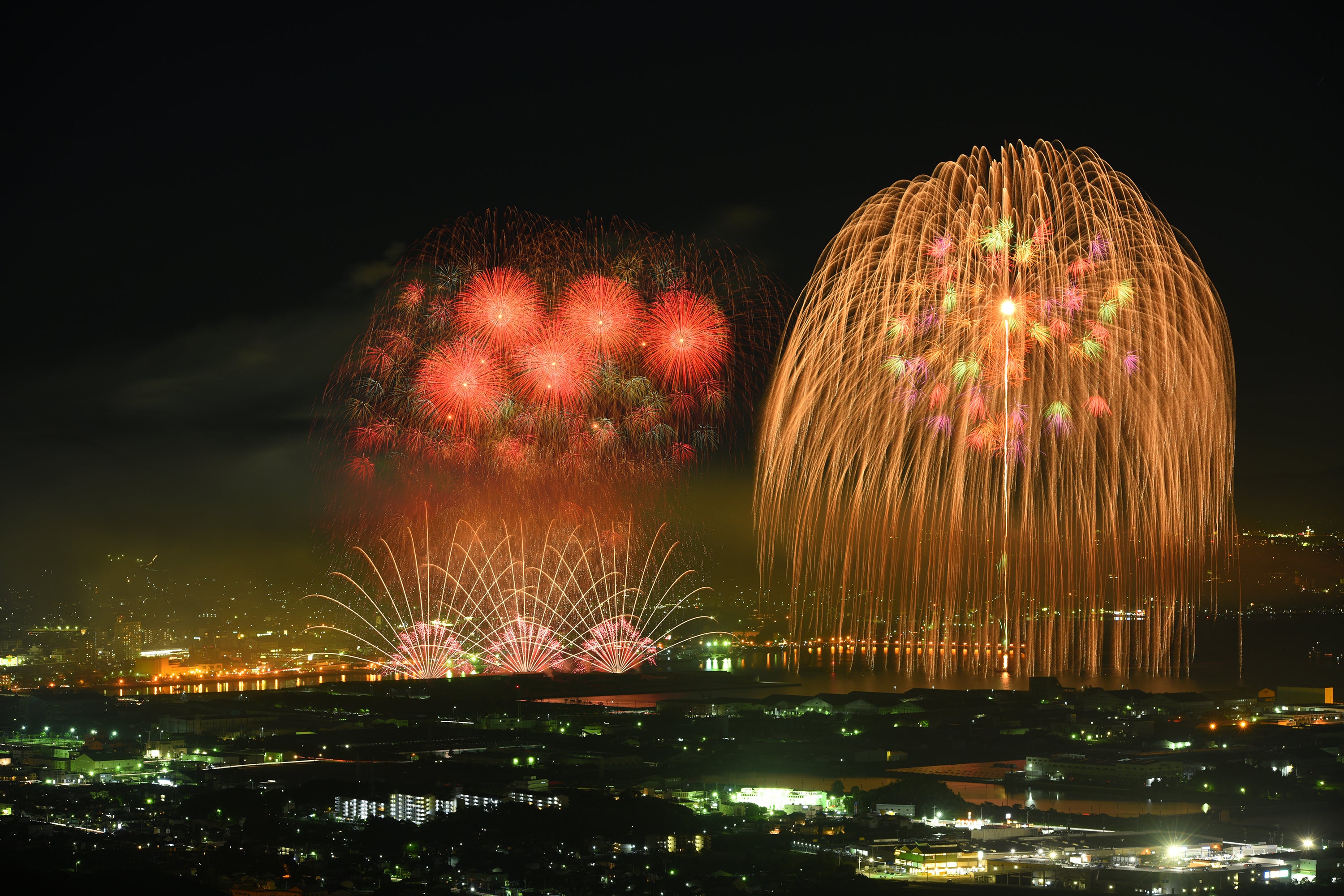 まず、場所がありません。オール蒲郡花火では、蒲郡中の地権者様にお願いをして、花火の設置をさせて頂いています。また、花火の打上げは、地元の加藤煙火だけなく、各地のお祭りの保存会など、普段花火を打上げている方たちにもご参加頂き、文字通りオール蒲郡で花火を打上げるのです。わっしょい!