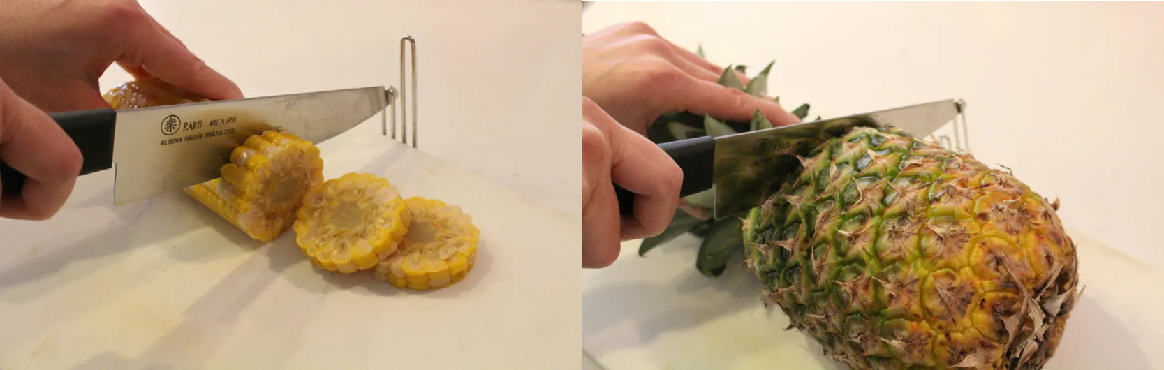 カボチャやパイナップル、オモチ、トウモロコシ等、こういった硬い食材って包丁で切る時結構大変ですよね。
