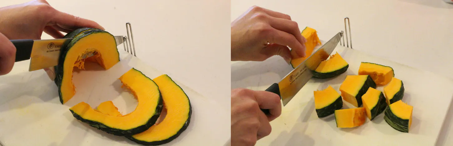 硬いカボチャのスライス切りや、ブロック切りも楽々!