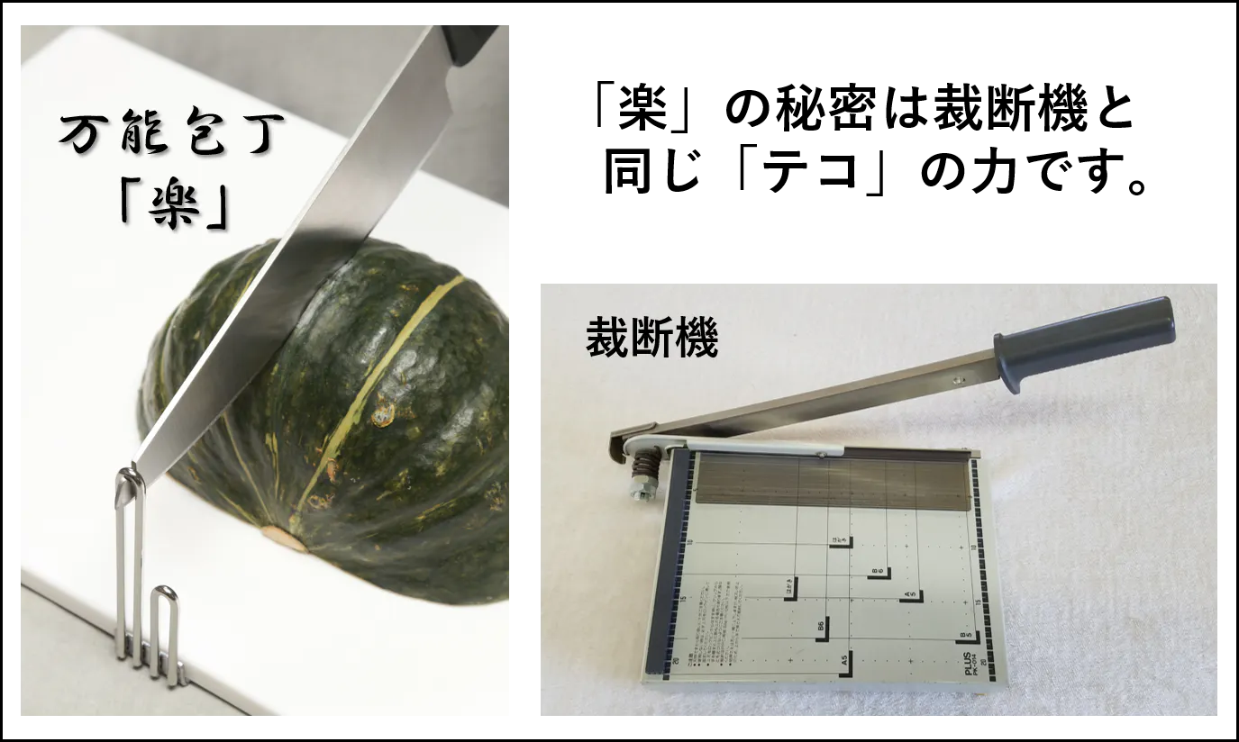 そう!万能包丁「楽」の秘密は「テコ」にあります。